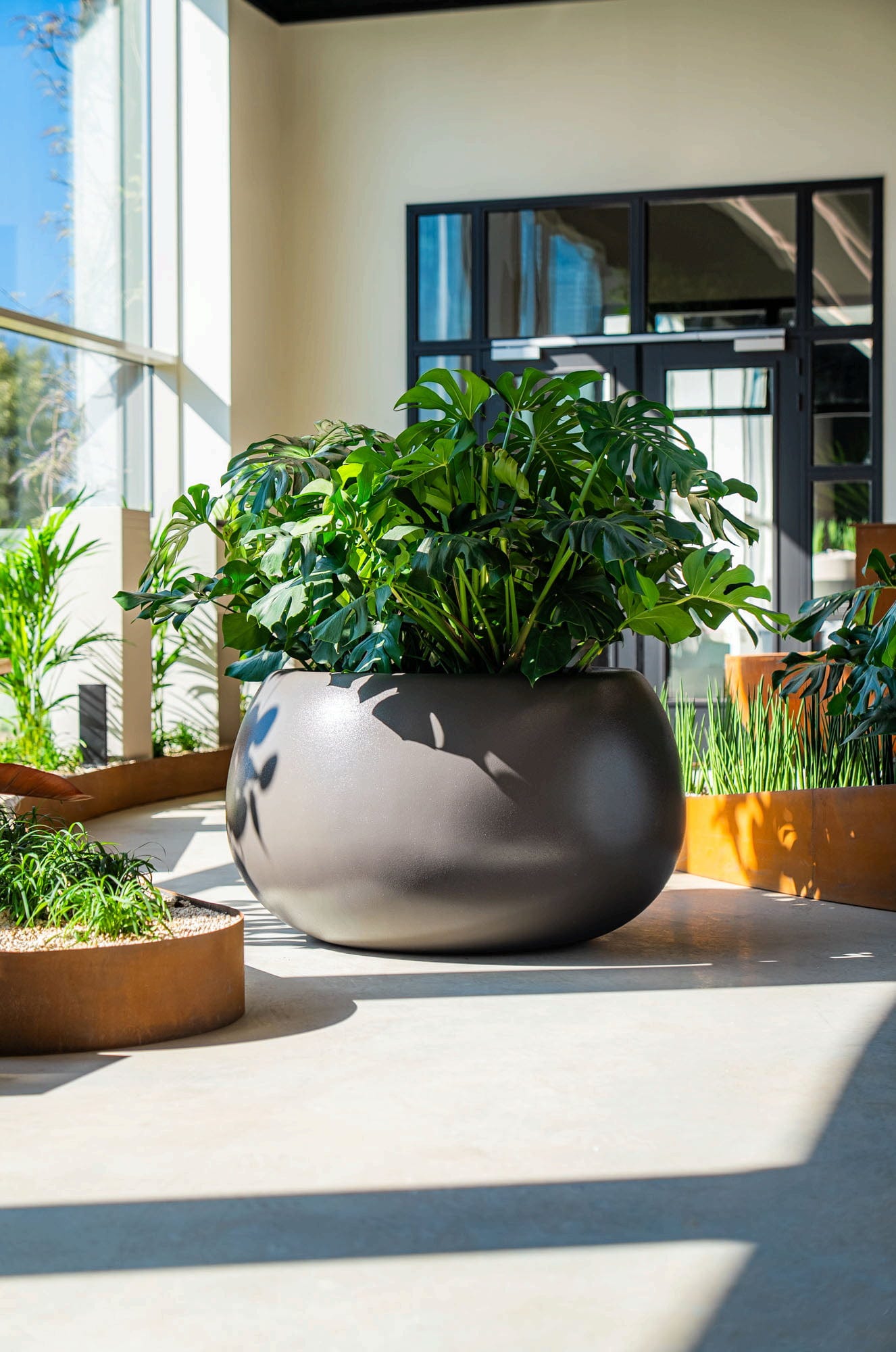 - Como la jardinera es de fibra de vidrio, debe colocarse siempre sobre una superficie plana y no sobre piedras, vigas o similares.