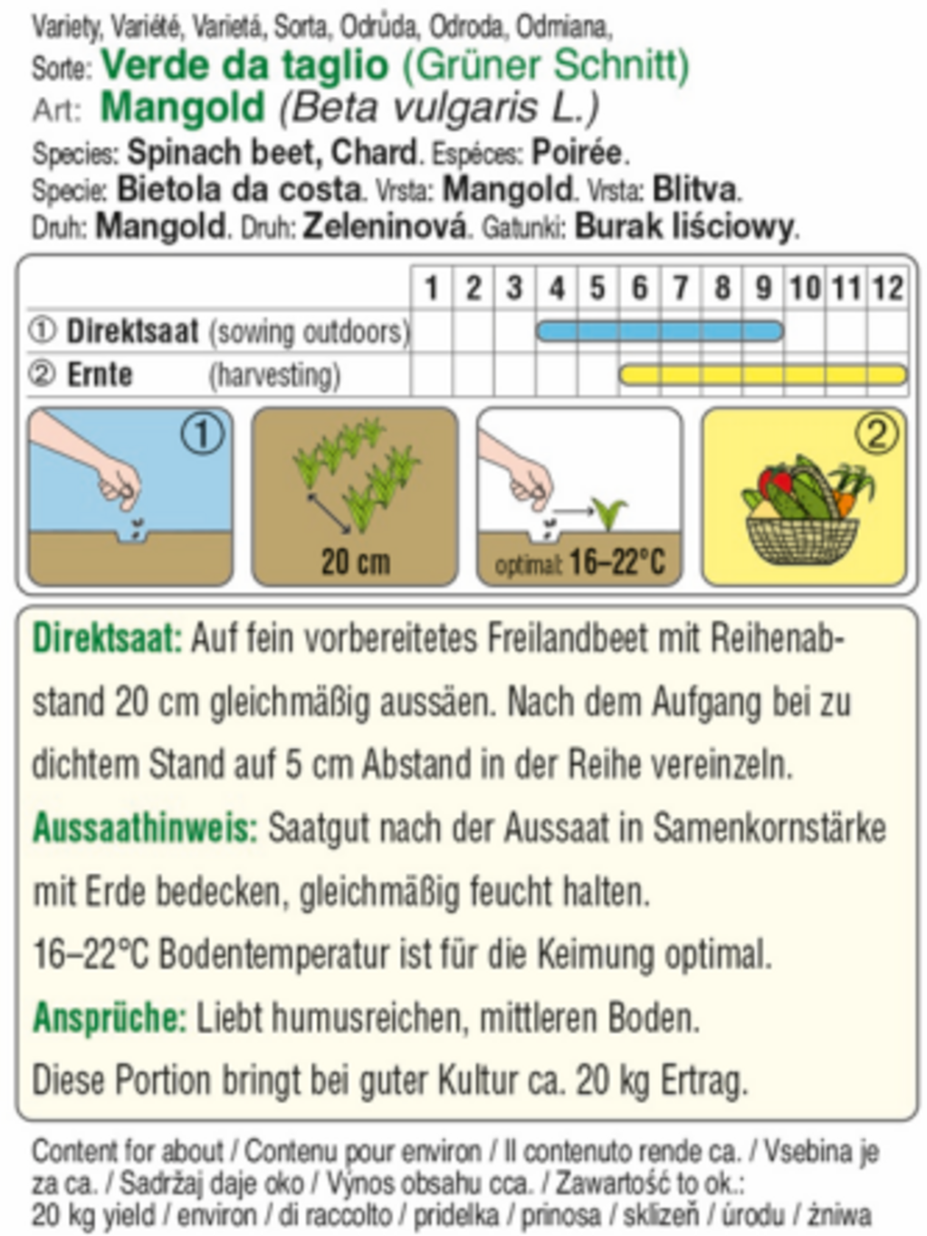 | Distancia de siembra: | Aprox. 20 x 20 cm |