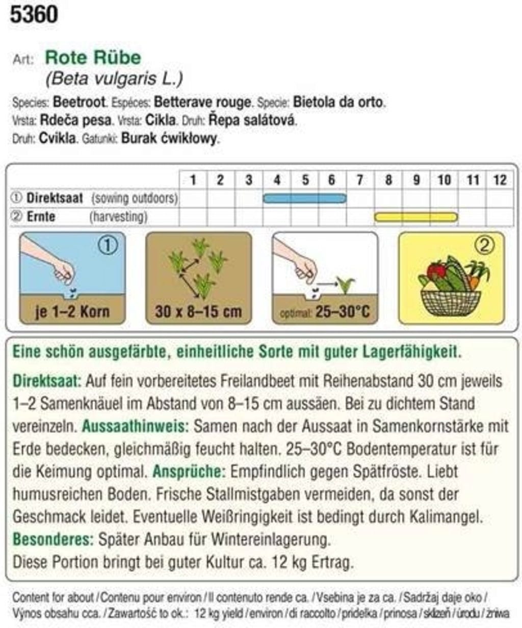 Esta variedad se caracteriza por su larga duración. Ideal para ensaladas o como guarnición, la remolacha es rica en valiosos nutrientes.