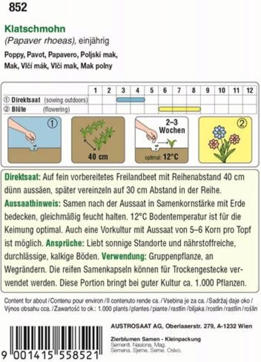 | Fabricante: | Austrosaat Österr. Samenzucht- u. Handels-Aktiengesellschaft, Oberlaaerstraße 279, 1232, Wien, Austria, officewien@austrosaat.at, www.austrosaat.at |