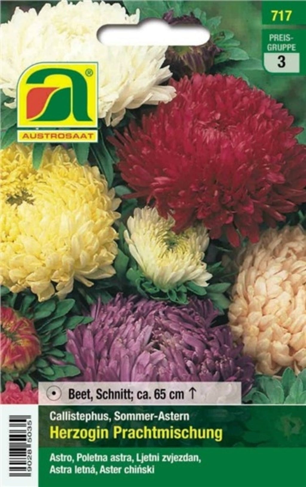Esta variedad produce flores de hasta 12 cm de tamaño, que recuerdan mucho a los crisantemos. El áster puede alcanzar los 65 cm de altura y es perfecto tanto para macetas como para crear ramos creativos.