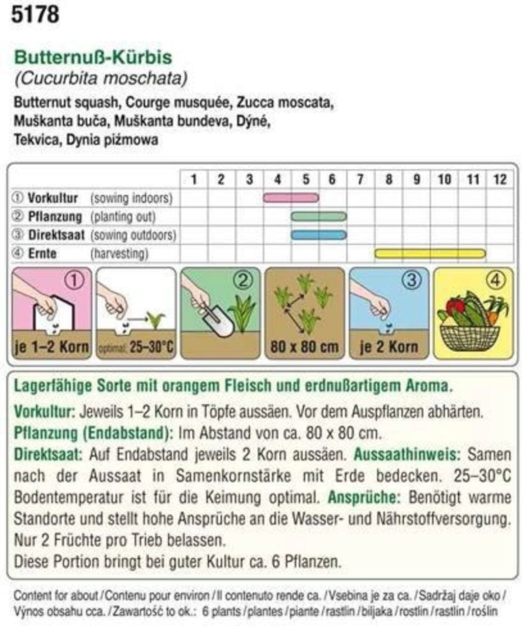 Esta variedad de calabaza tiene un sabor que recuerda al del cacahuete. Una vez cosechada, se conserva durante mucho tiempo y puede usarse en deliciosas sopas o guarniciones.