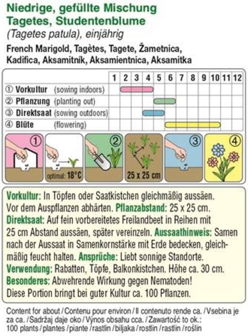 | El contenido es suficiente para aprox.: | 100 plantas |