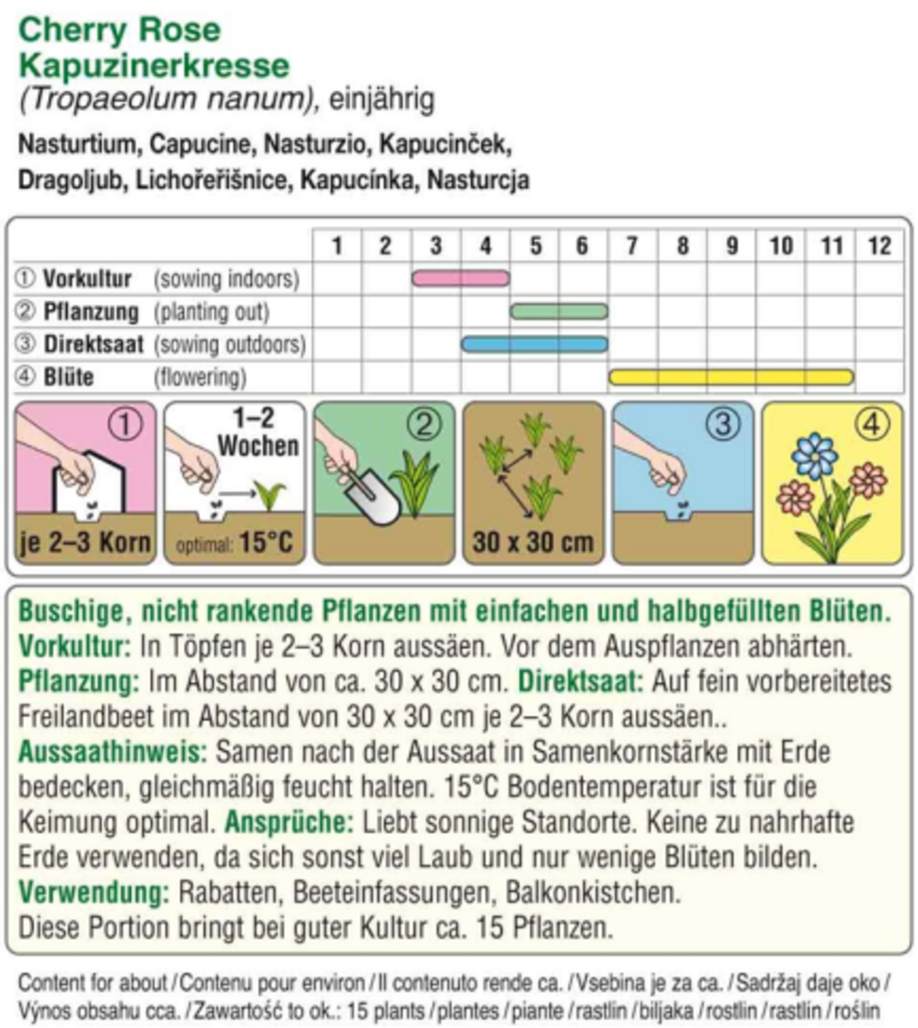 | Lugar de cultivo: | Siembra directa/campo abierto al aire libre/arriate, Precultivo en casa |