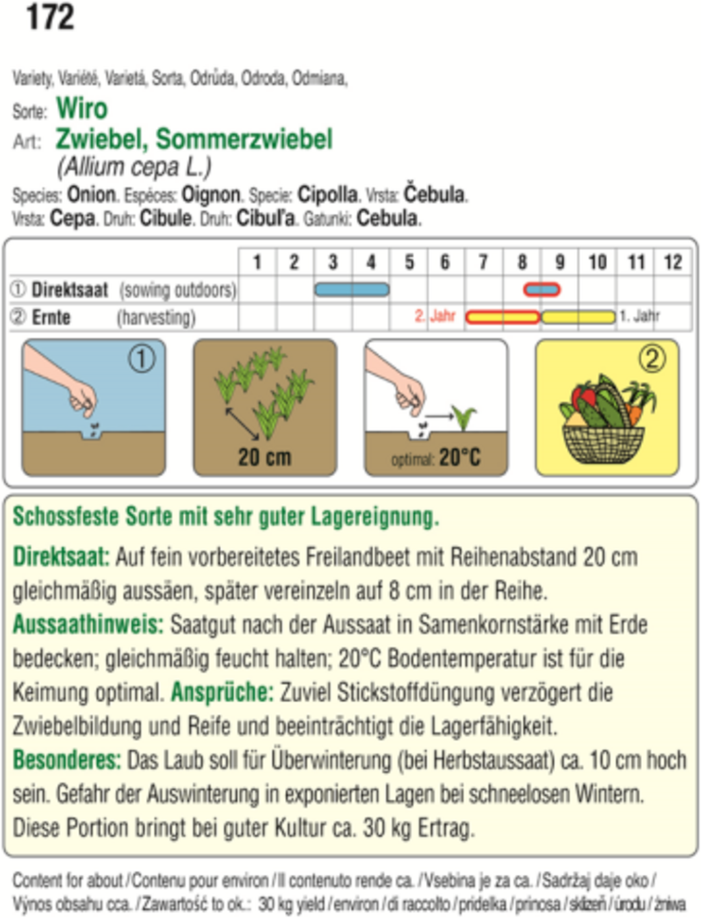 | Distancia de siembra: | 20 cm |