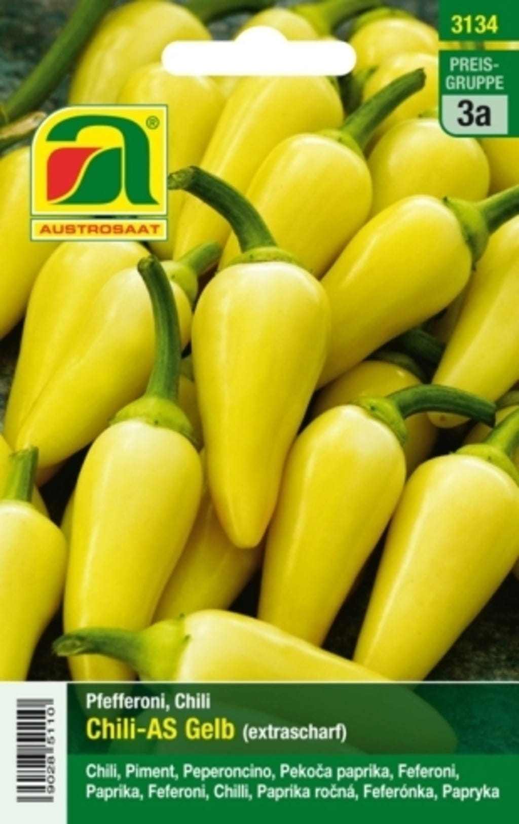 El chile "Chili-AS" produce frutos pequeños, carnosos y cónicos, increíblemente picantes. Los pimientos son inicialmente amarillos y luego se tornan rojos al madurar. Esta variedad se puede cosechar temprano, pero solo si se cultiva en zonas muy cálidas. Los pimientos resultantes se pueden secar o usar en salsas y platos sabrosos.