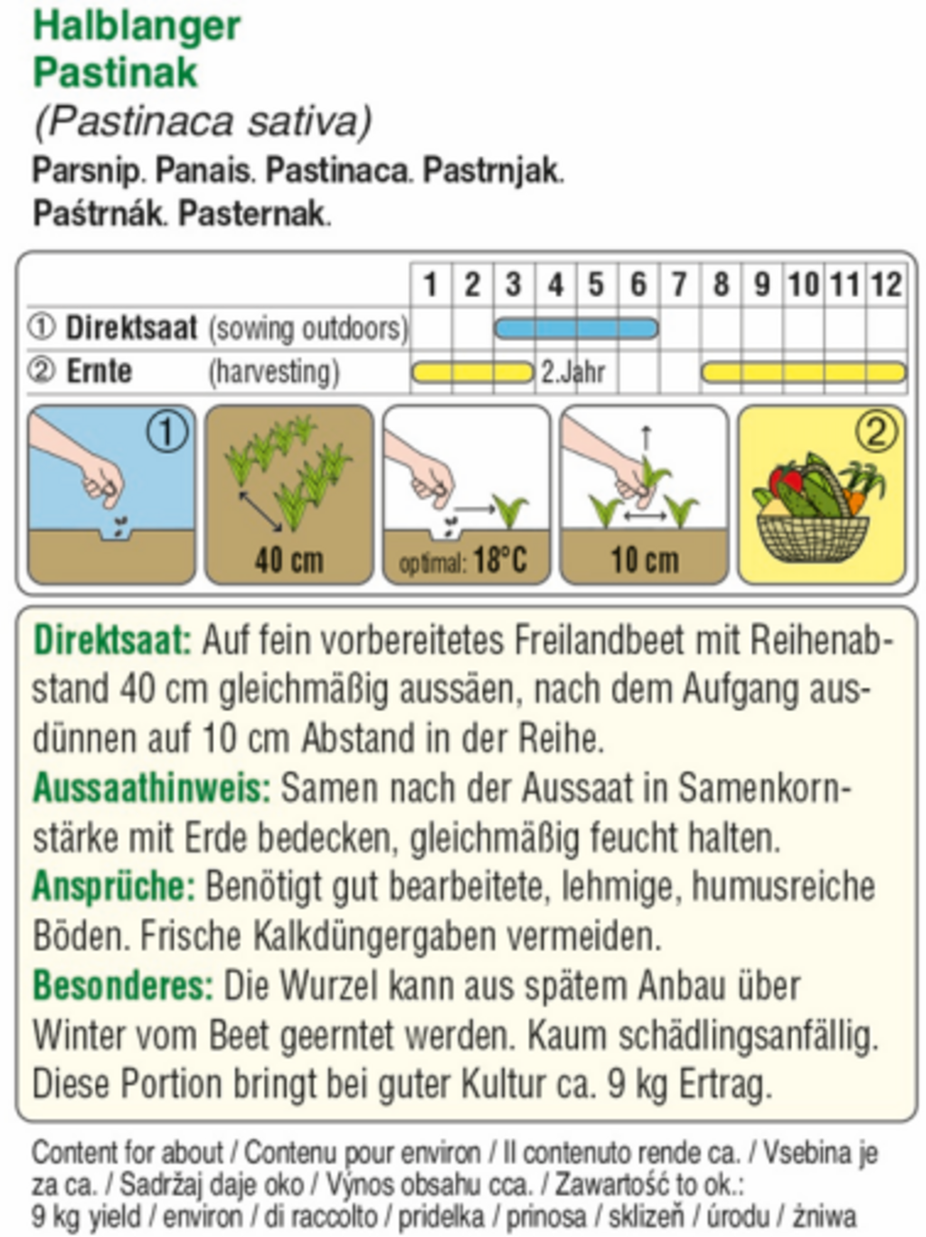 La chirivía es una planta con una raíz cónica, similar a la remolacha. Los tallos son mayormente huecos y acanalados. Su sabor recuerda al del apio y la zanahoria, y es muy similar al del perejil. La chirivía se puede cocinar y preparar deliciosas sopas. Rallada, también es un delicioso acompañamiento para ensaladas. La raíz es resistente a las heladas, se puede cosechar incluso en invierno y es resistente a las plagas.