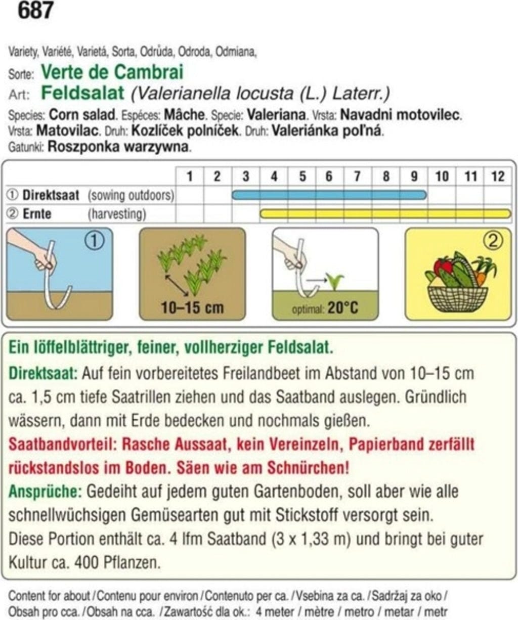 comentarios en español del producto: AUSTROSAAT Cinta De Semillas - Canónigo "Verte de Cambrai"