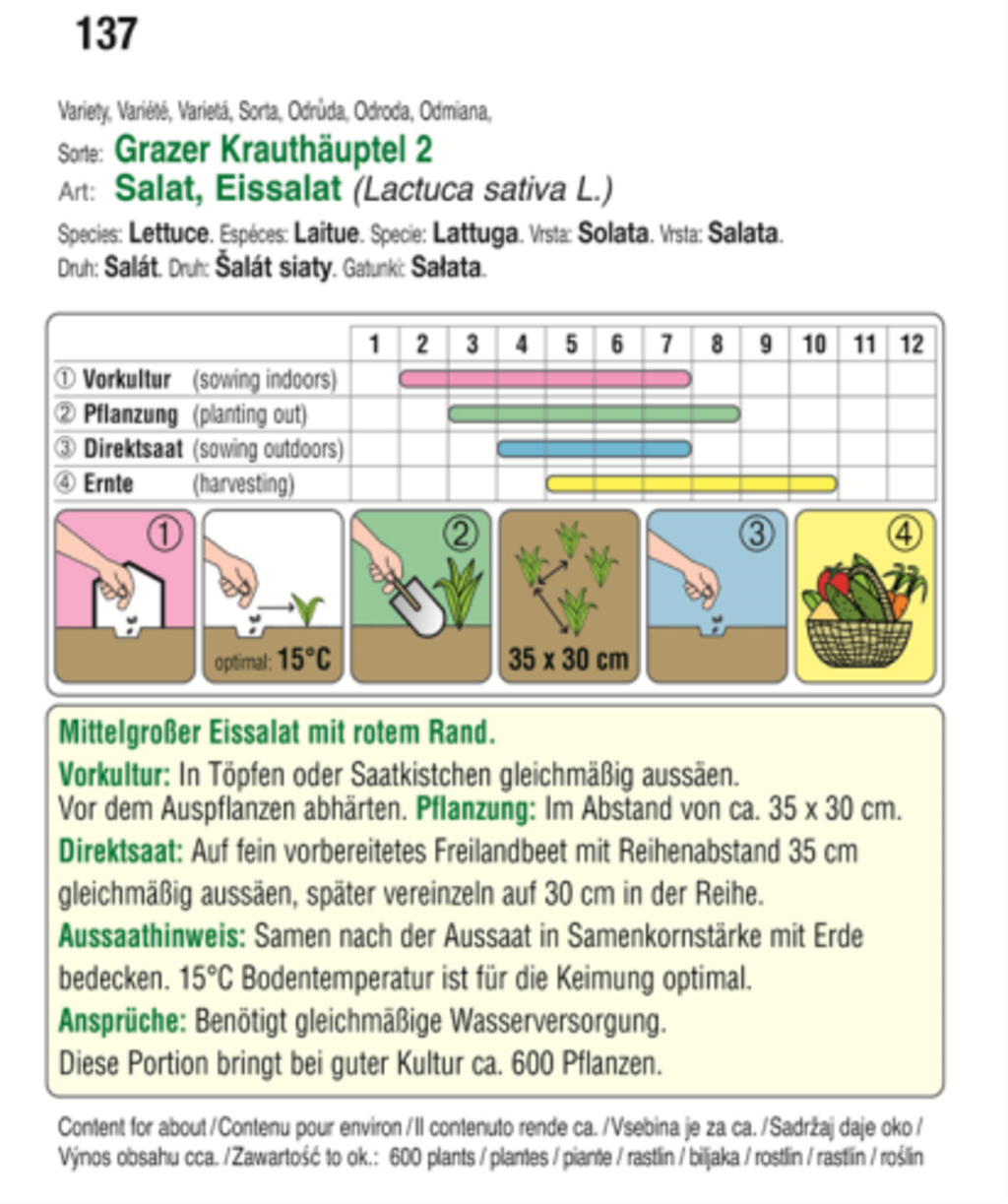 | Lugar de cultivo: | Siembra directa/campo abierto al aire libre/arriate, Precultivo en casa |