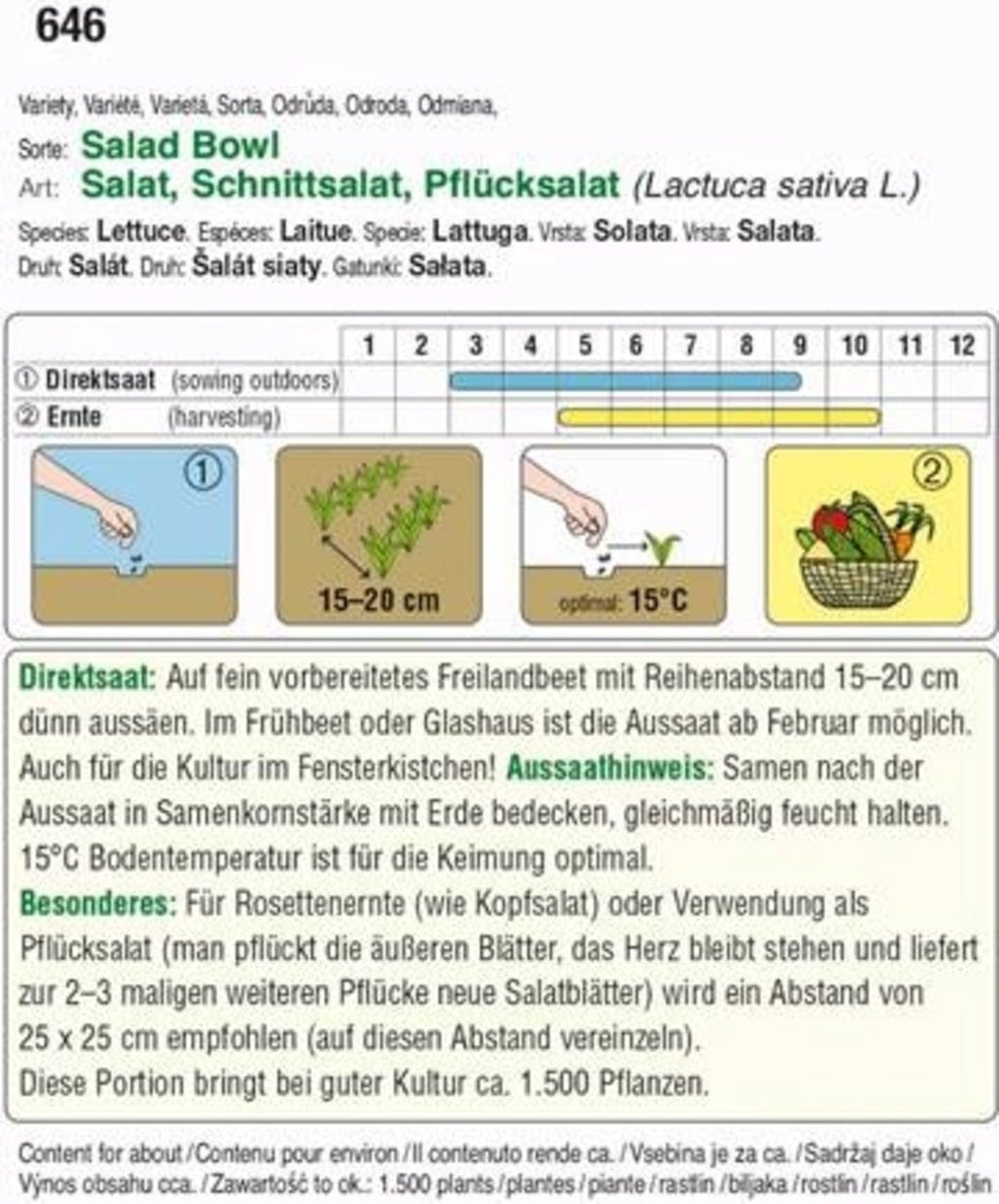 Esta variedad de lechuga produce hojas que recuerdan mucho a las hojas de roble y tienen un sabor particularmente a nuez. La lechuga Salad Bowl crece muy rápido y produce cogollos pequeños.
