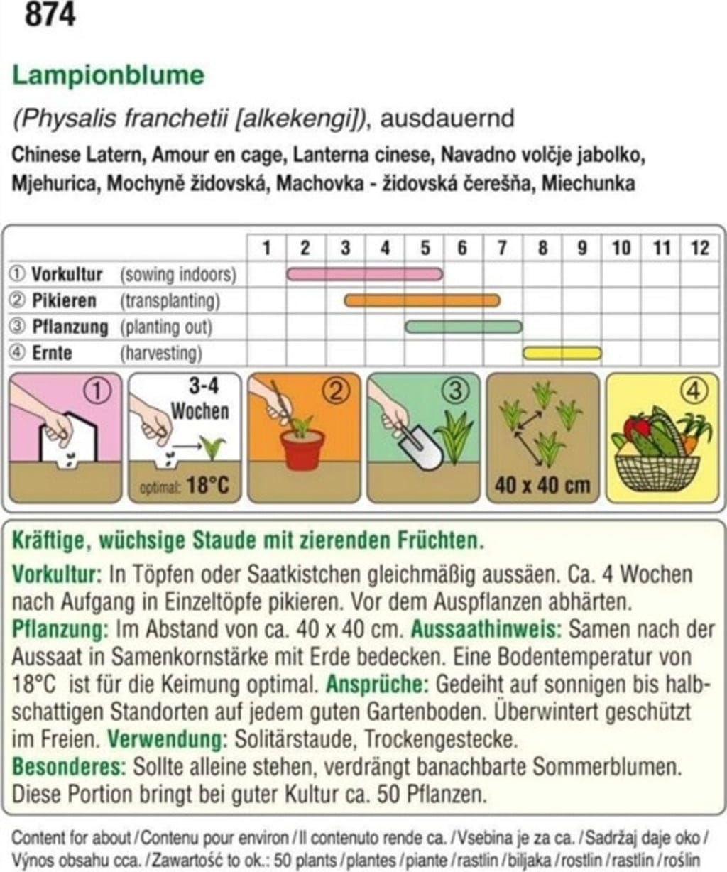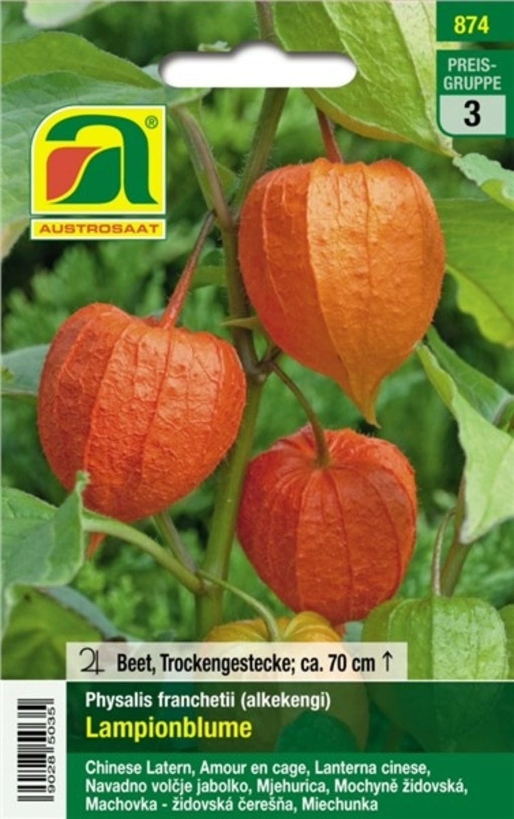 El farolillo chino es una herbácea perenne muy vigorosa. Sus pequeñas flores blancas son discretas y aparecen en las axilas de las hojas. Tras la floración, las flores desarrollan bayas que inicialmente son amarillas y verdes, y luego anaranjadas.