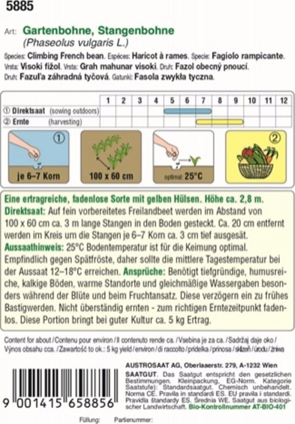 AUSTROSAAT Judía Trepadora Bio "Neckargold"