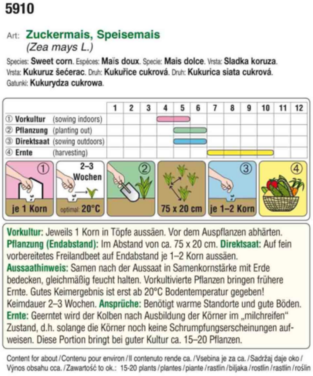 Ideal para enriquecer deliciosamente tus ensaladas, esta variedad produce mazorcas con granos dulces de un hermoso amarillo dorado.