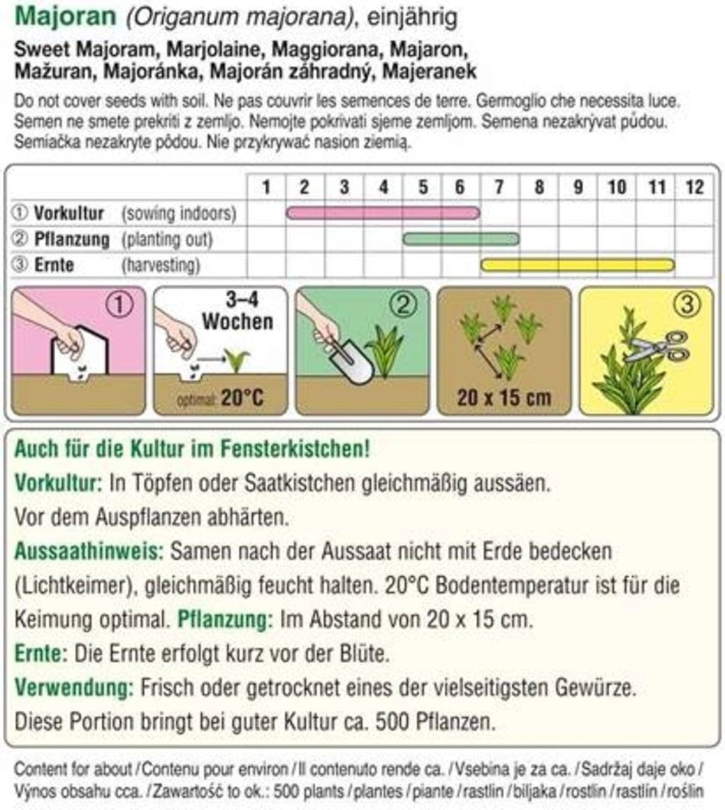 La mejorana es muy apreciada por su fresco aroma y puede cultivarse tanto en exterior como en maceta. Si no se corta, la planta alcanza una altura de 30-40 cm.