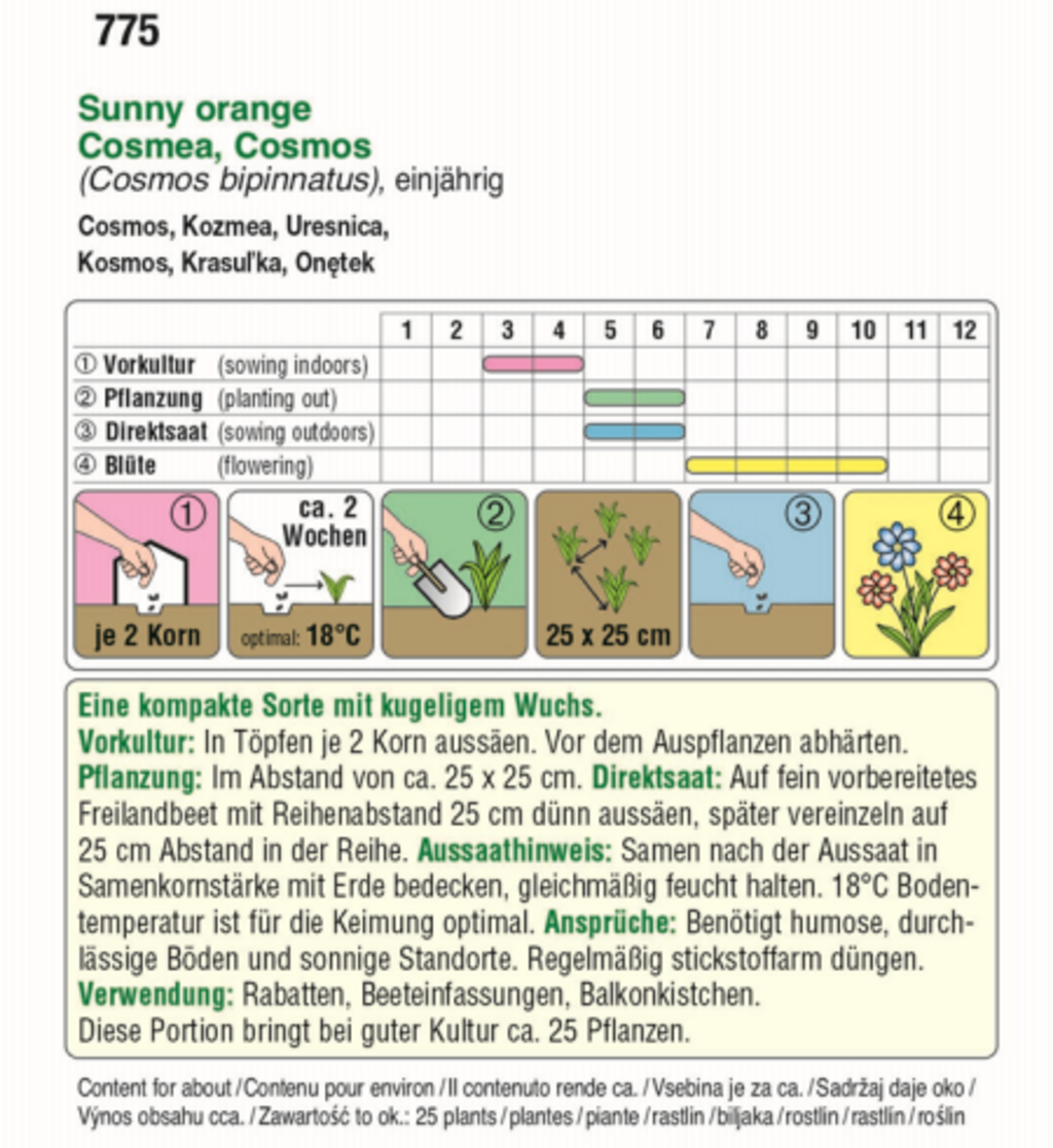 | Lugar de cultivo: | Siembra directa/campo abierto al aire libre/arriate, Precultivo en casa |