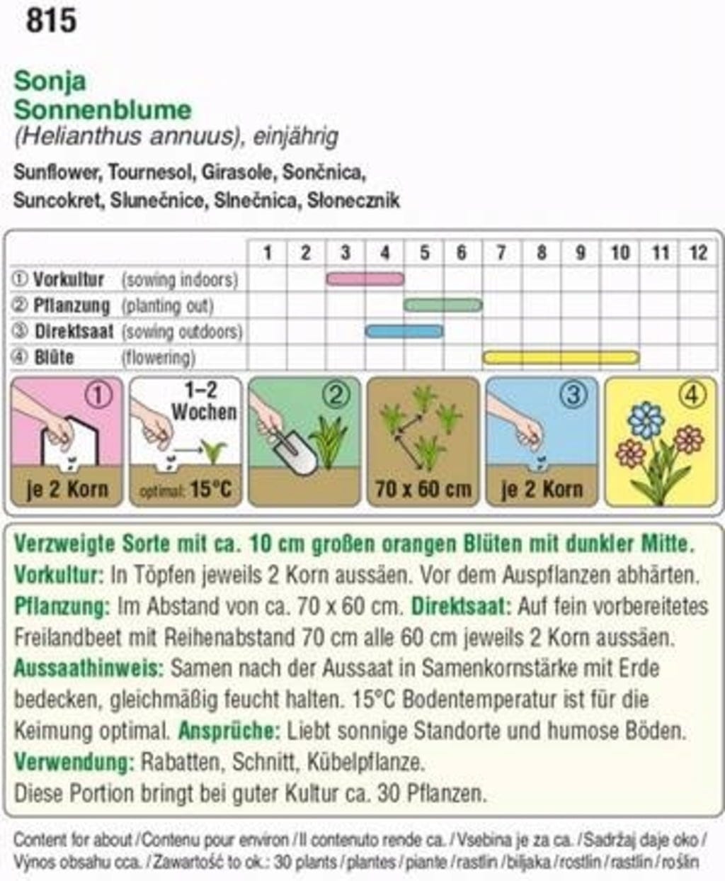 | Lugar de cultivo: | Siembra directa/campo abierto al aire libre/arriate, Precultivo en casa |