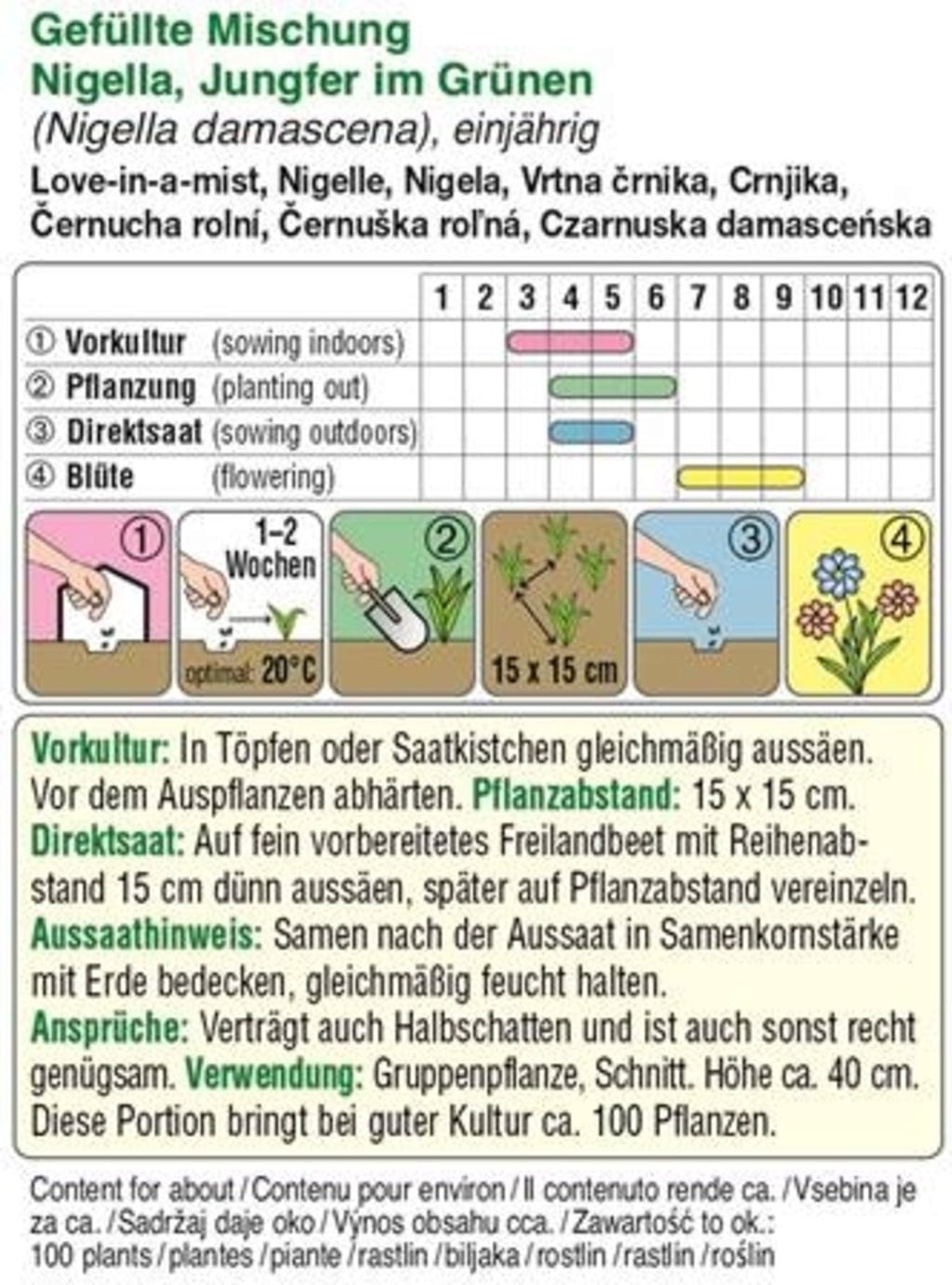 | Lugar de cultivo: | Siembra directa/campo abierto al aire libre/arriate, Precultivo en casa |
