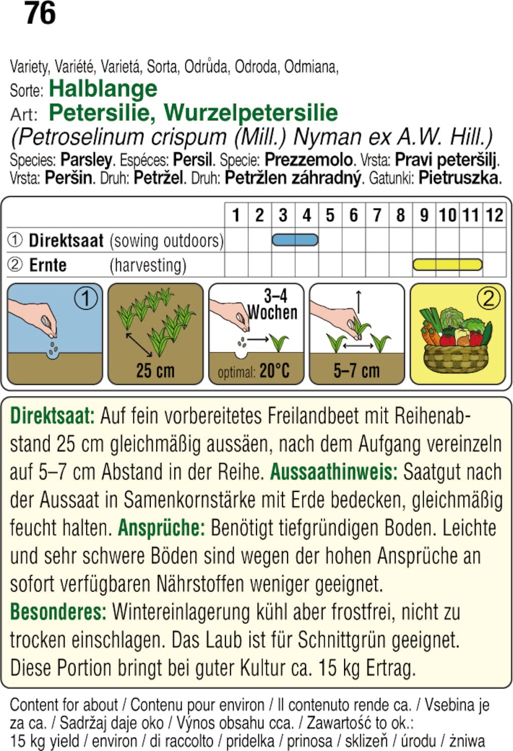 | El contenido es suficiente para aprox.: | 15 kg de cosecha |