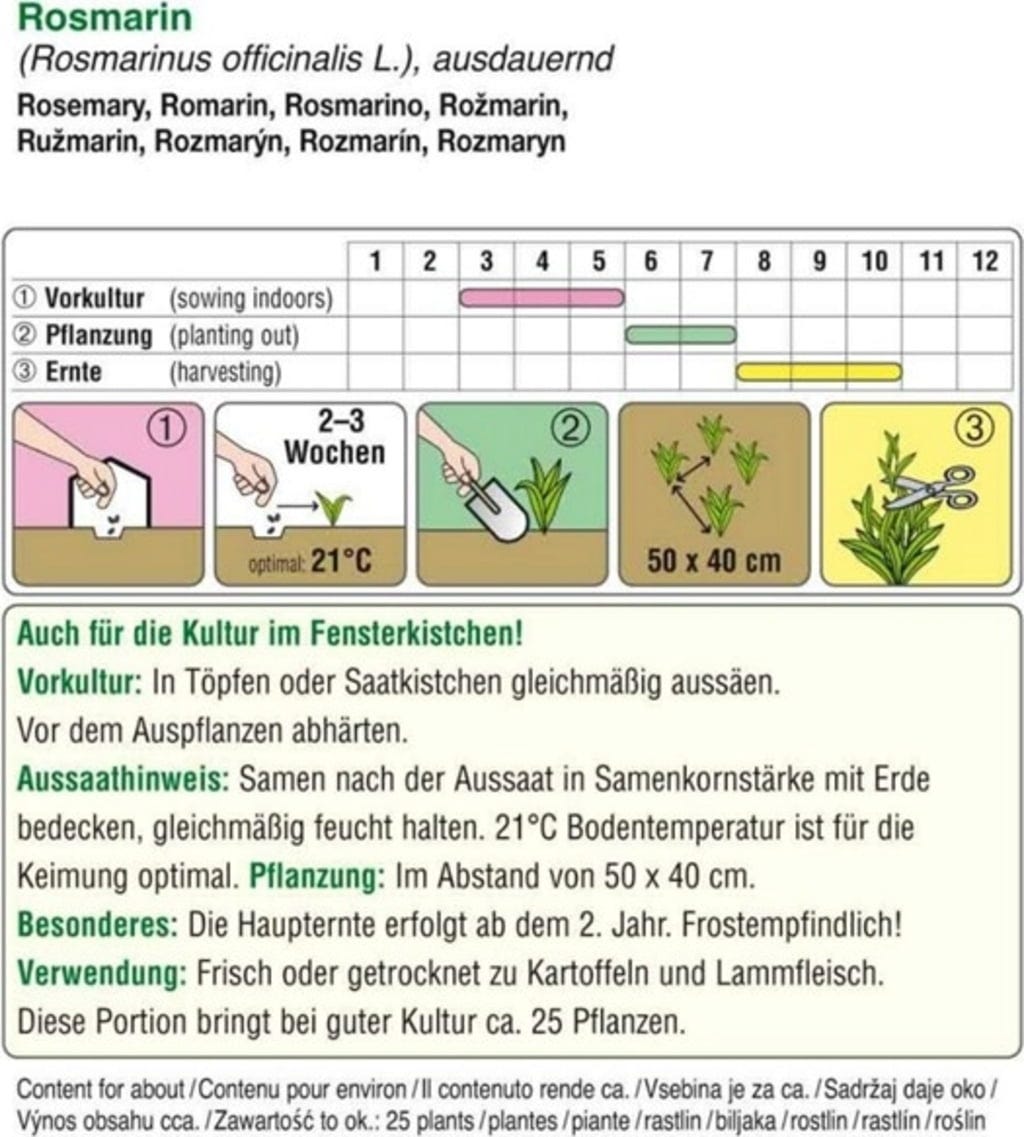El romero es una planta que se cultiva fácilmente en maceta. Si no se poda, puede alcanzar los 80 cm de altura. La cosecha principal de sus hojas aromáticas se realiza en el segundo año. En invierno, es necesario proteger la planta, ya que es muy sensible al frío.