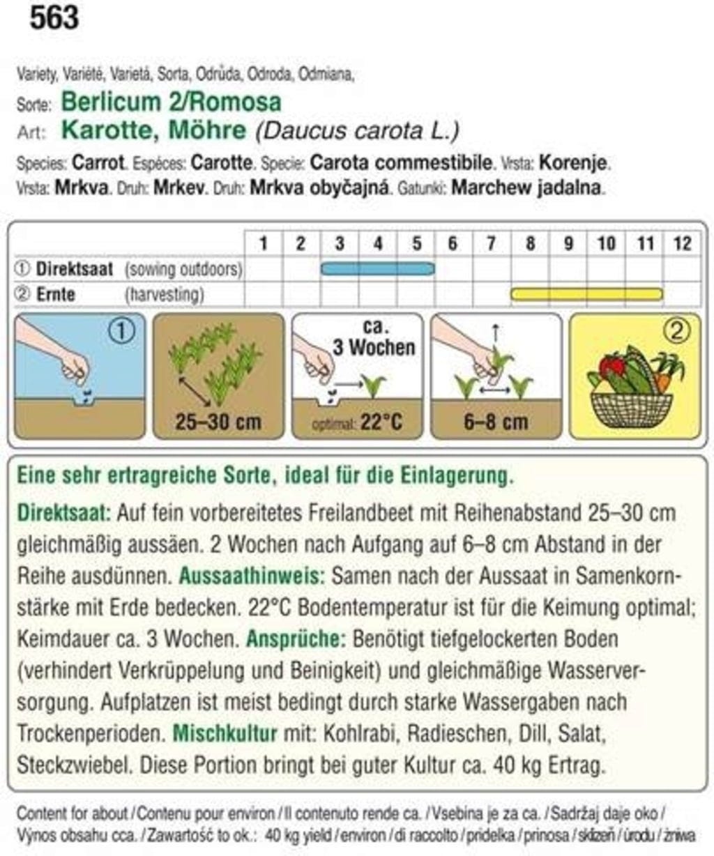 La variedad de zanahoria "Berlicum 2 / Romosa" es muy productiva e ideal para conservas. Son perfectas como refrigerio saludable o guarnición.