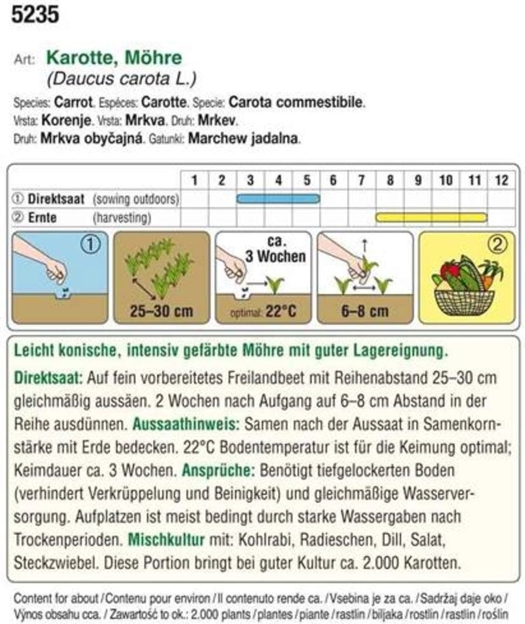 Consejo: Las zanahorias combinan bien en cultivos mixtos con colinabo, rábanos, eneldo, lechuga y cebollas.