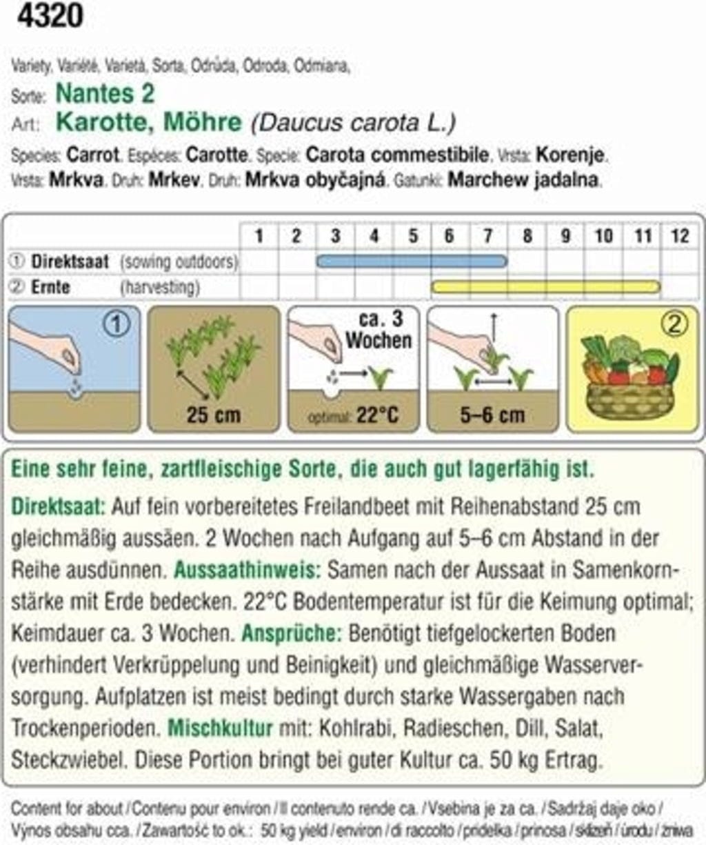 El Nantes 2 es adecuado para cultivos mixtos con rábanos, colinabos, eneldo, cebollas y lechuga.