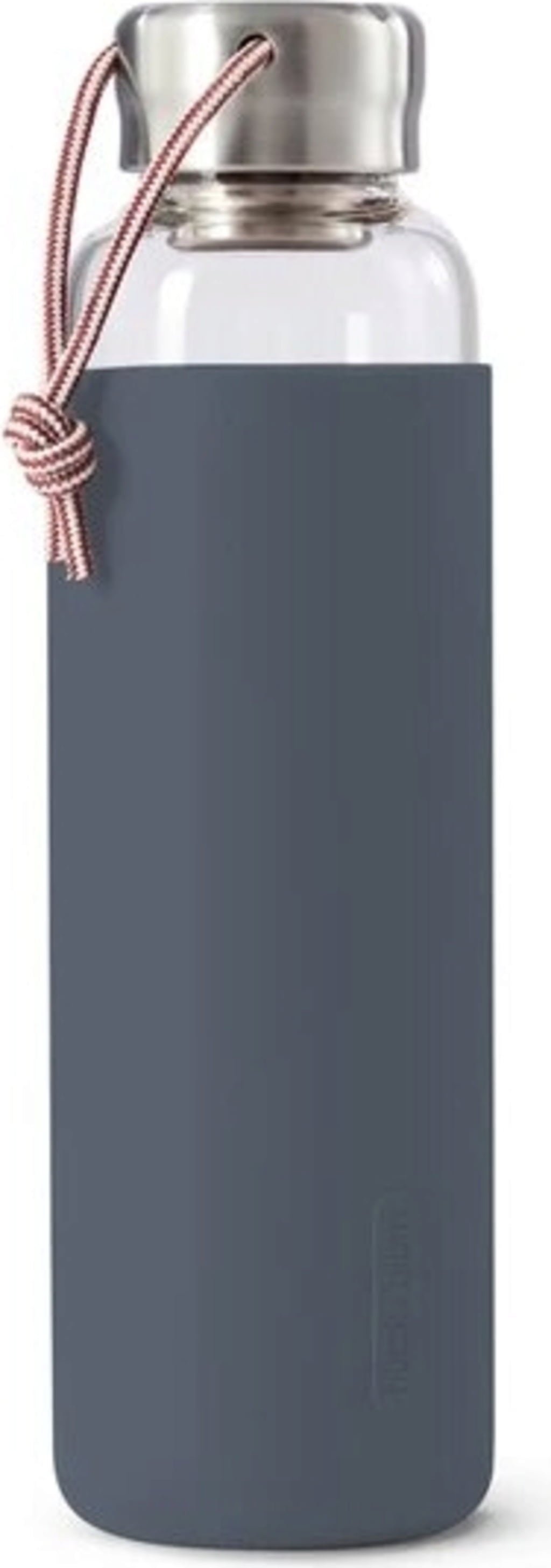 Elegante botella de 600 ml, fabricada en vidrio borosilicato de alta calidad y resistente a los cambios térmicos. El revestimiento antideslizante está hecho de caucho termoplástico con un 30% de fibras de madera de producción sostenible. La botella está equipada con un práctico cordón de nailon paracord para facilitar su transporte.