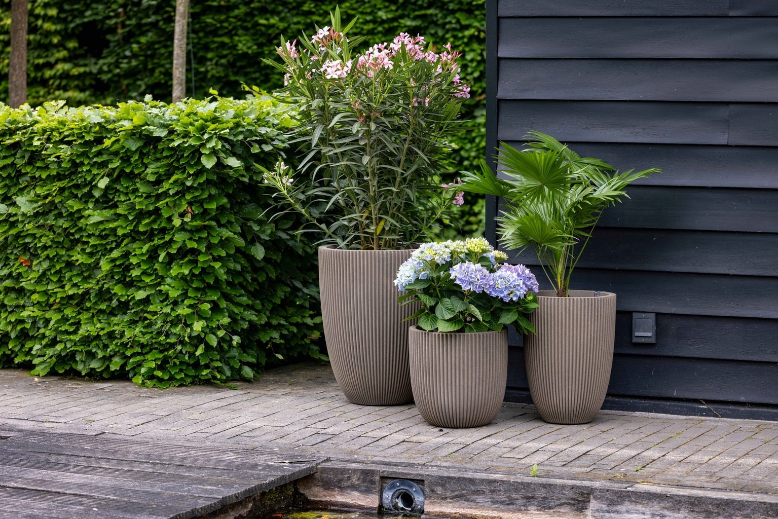 Este macetero de la colección Groove combina funcionalidad, estilo y conciencia medioambiental. Fabricado con materiales reciclados, no sólo es una elección sostenible, sino también un auténtico elemento decorativo tanto para interior como para exterior.