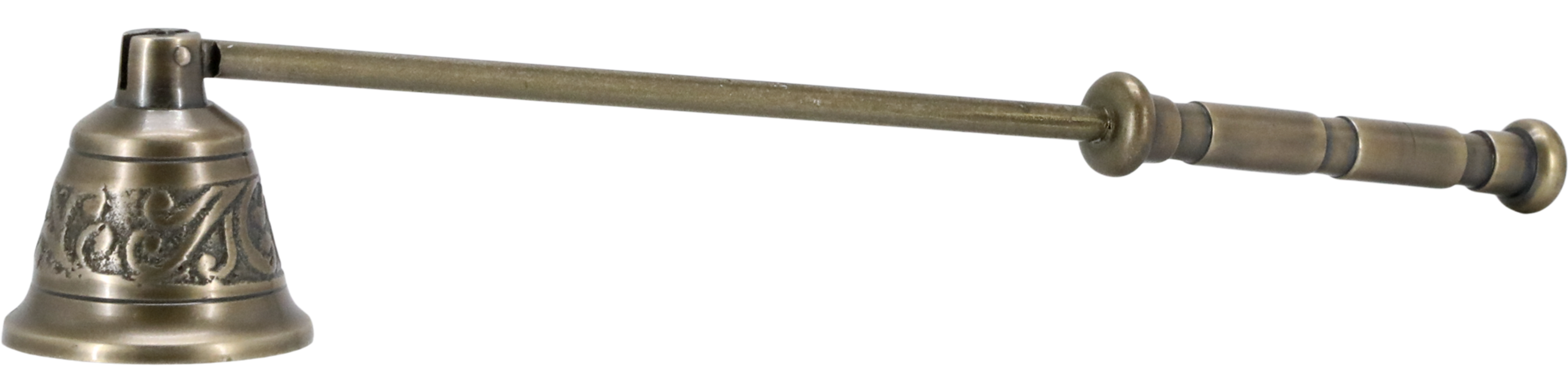Este extintor de velas de aluminio con acabado en latón envejecido es la ayuda ideal para apagar velas de forma segura, sin humo ni residuos de cera. Compacto y manejable, es perfecto para todas las velas de tallo.