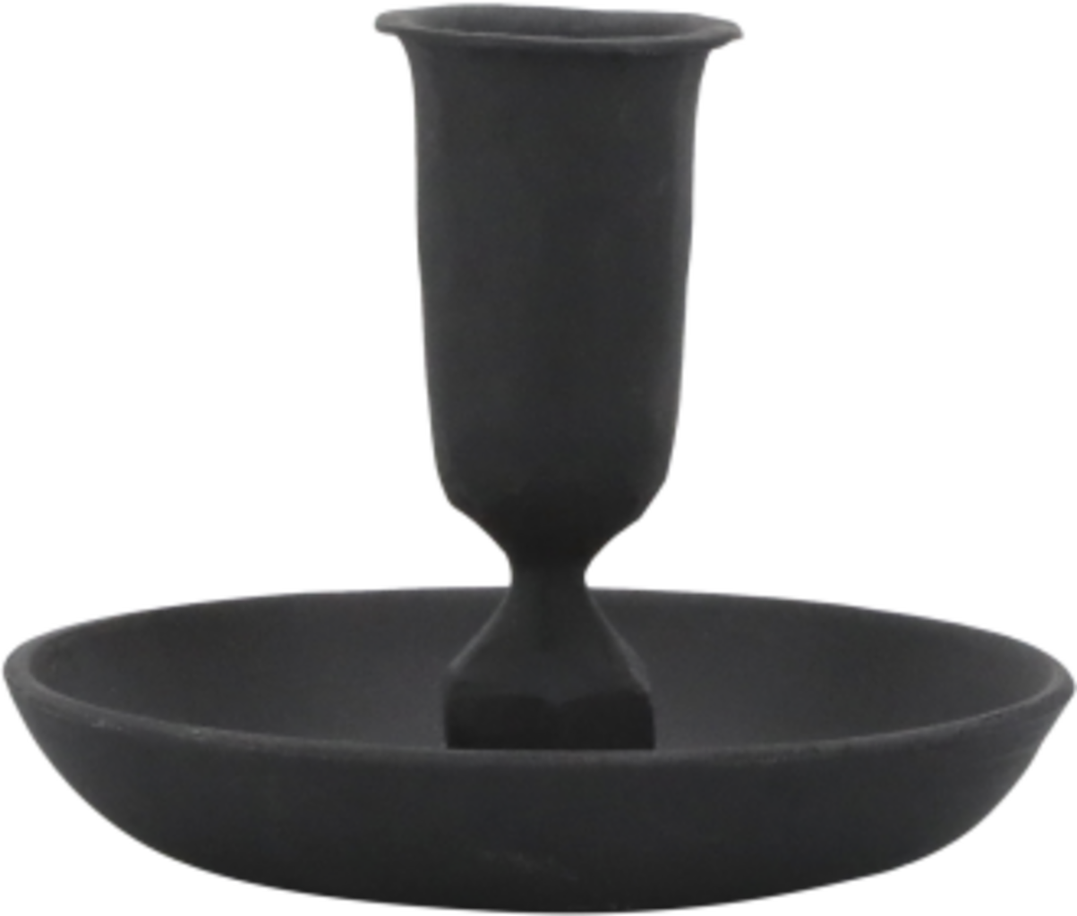 Este pequeño portavelas de hierro con acabado en negro antiguo aporta una luz atmosférica a cualquier estancia. Ideal para velas pequeñas y clásicas, es perfecto para crear acentos individuales o para combinar con otros portavelas.
