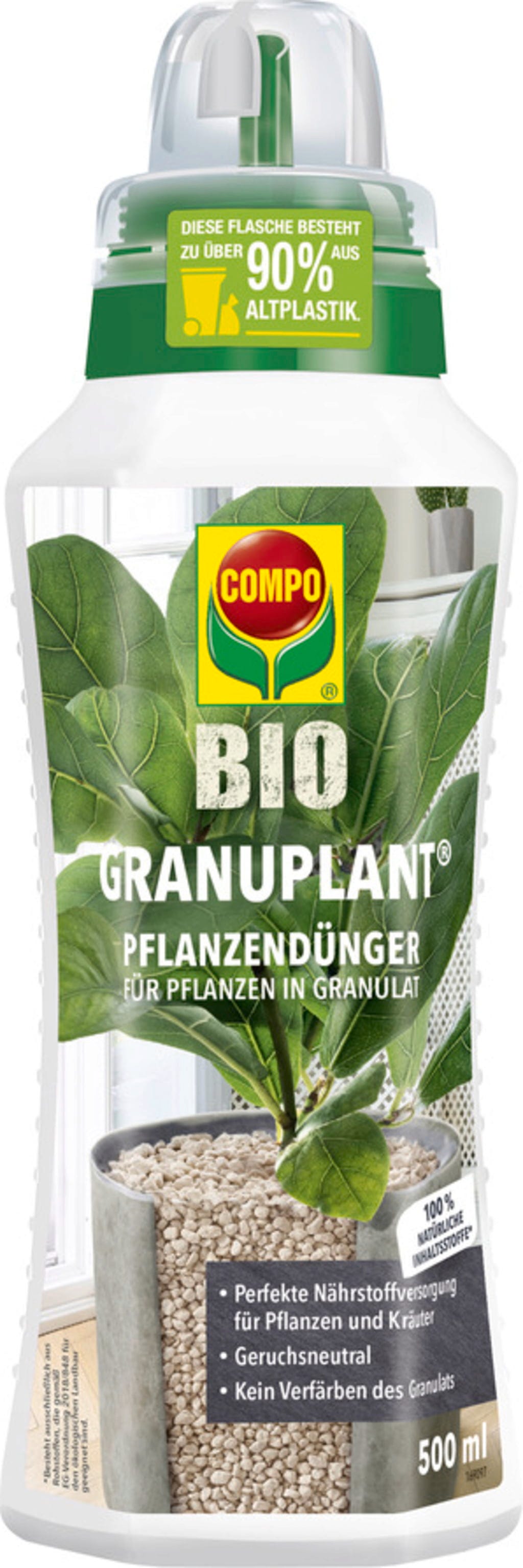Las plantas en sustratos granulados necesitan un abono que contenga todos los nutrientes esenciales y que, al mismo tiempo, proteja el granulado de posibles manchas. El abono biológico Granuplant de COMPO cumple con todos estos requisitos gracias a sus ingredientes puramente naturales. Las plantas y hierbas reciben un aporte óptimo y disfrutan de un crecimiento vigoroso.