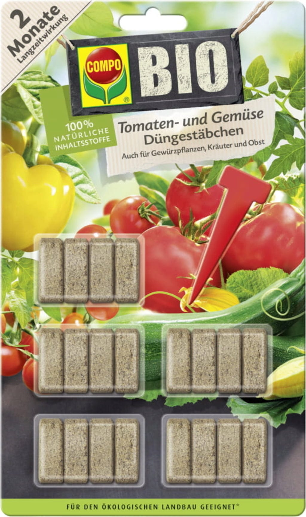 COMPO Barritas Fertilizantes BIO para Tomates y Hortalizas, 20 piezas