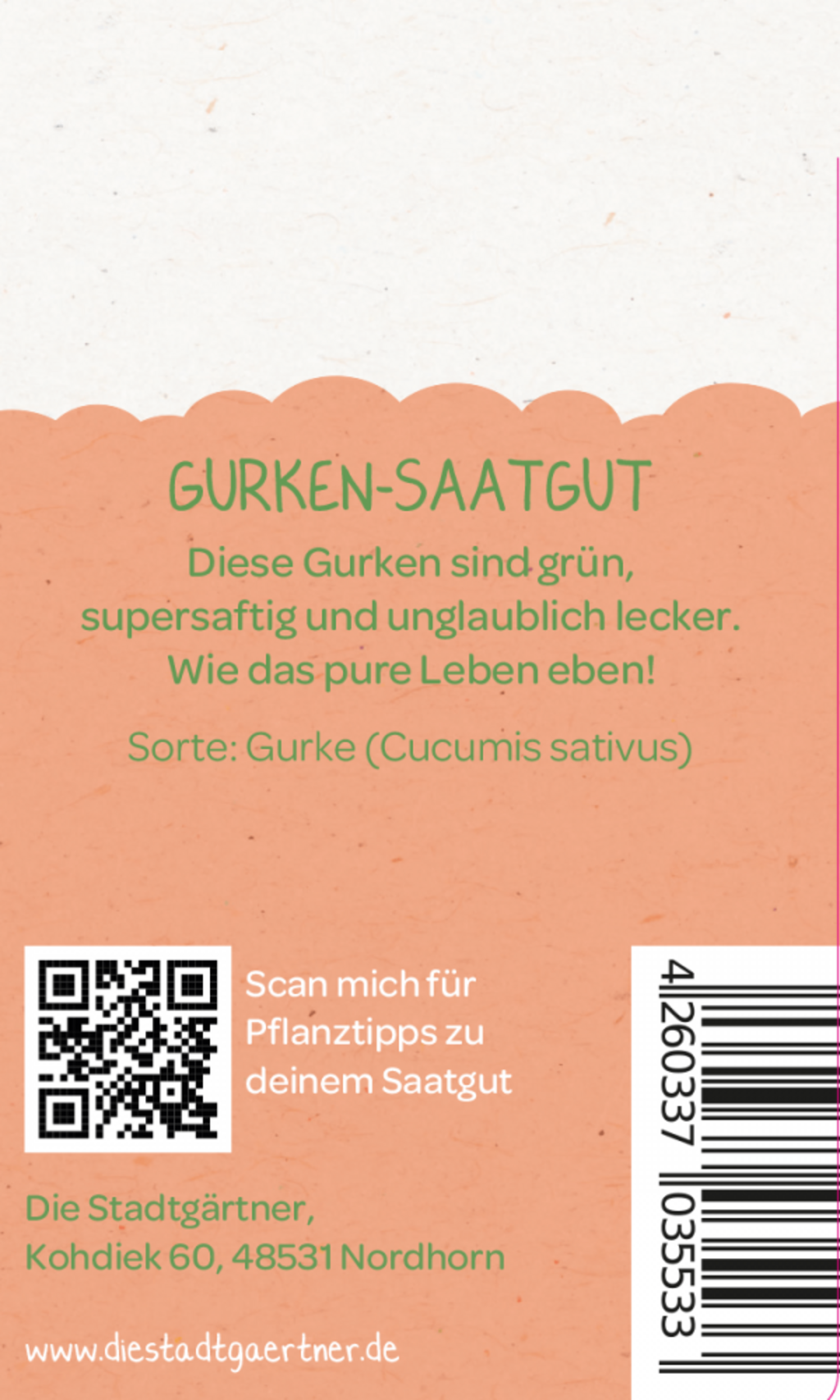 Esta tarjeta contiene semillas de pepino de la variedad Darina (Cucumis sativus). Las semillas se pueden cultivar al aire libre después de la última helada o en macetas en el balcón. Los pepinos necesitan un lugar protegido y un suelo rico en nutrientes, mucha agua y un soporte para crecer. La Darina desarrolla frutos de color verde oscuro y de hasta 25 cm de largo, totalmente libres de notas amargas.