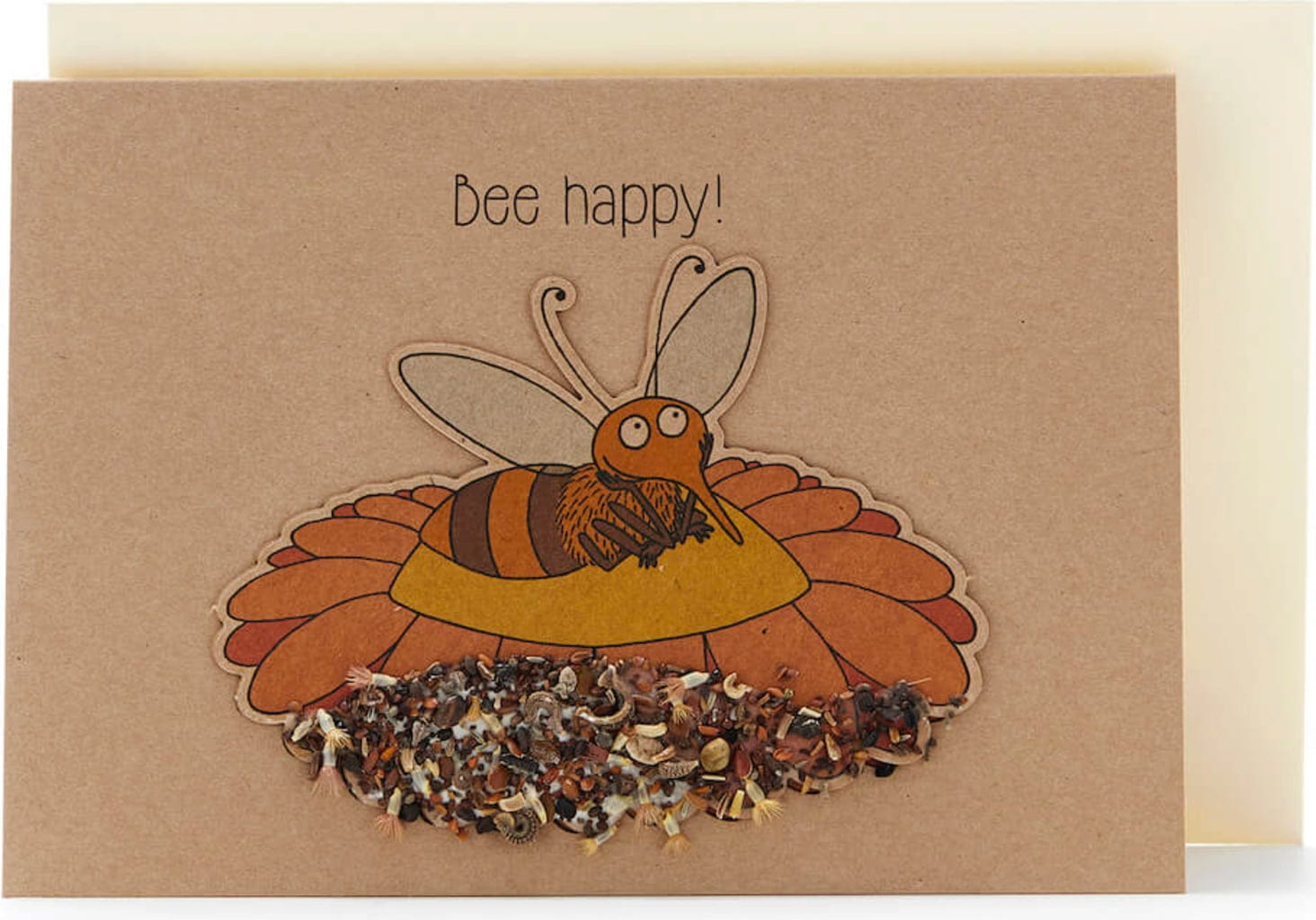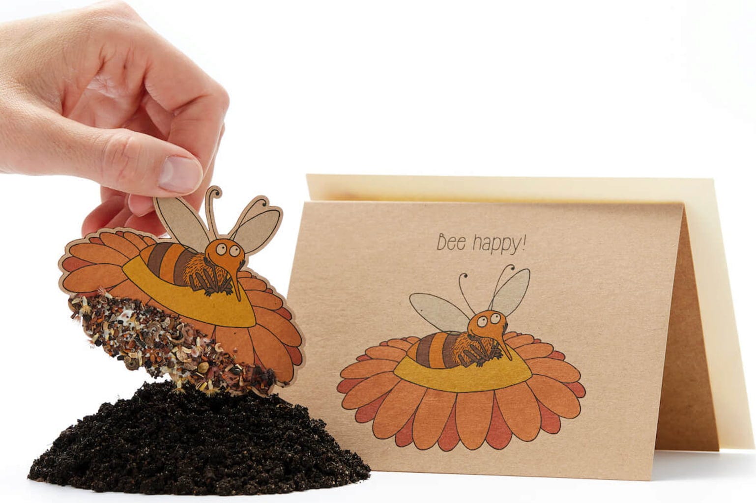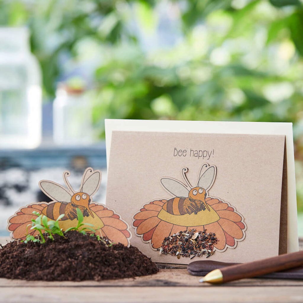 Como la abeja también está impresa en el papel, el motivo permanece incluso después de quitar las semillas para plantarlas.