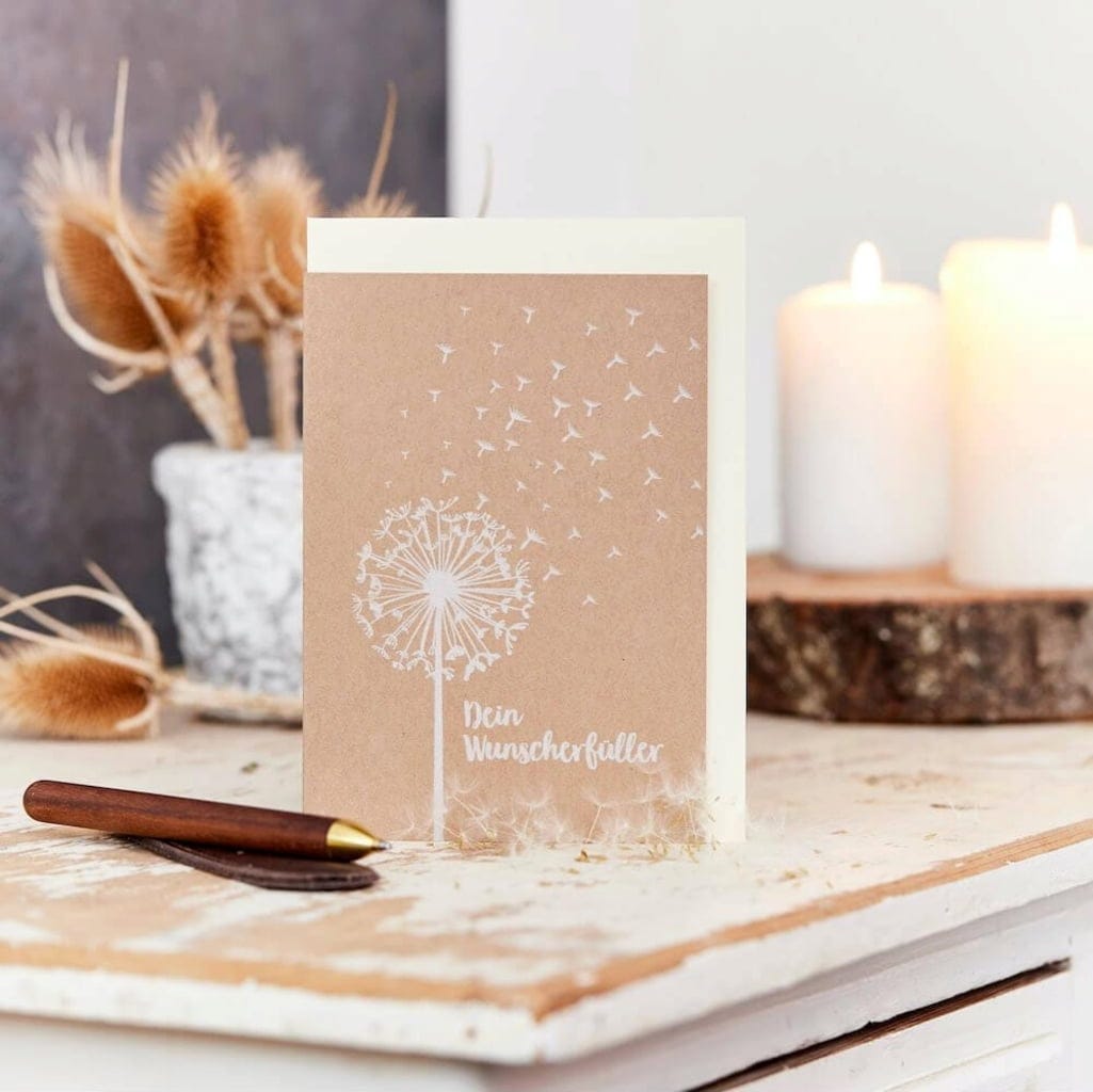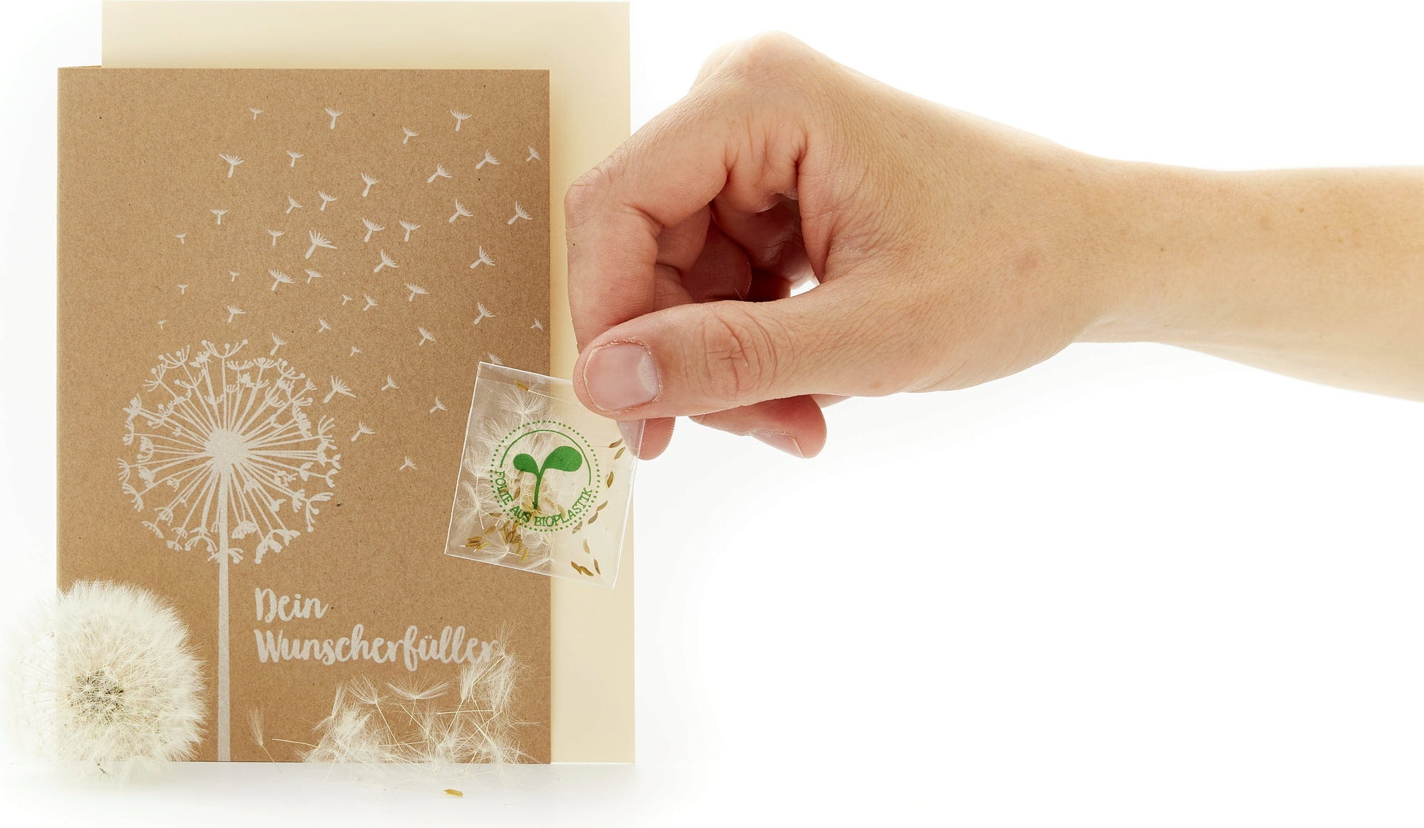 Esta tarjeta de felicitación con un diseño encantador contiene semillas de diente de león y es una forma maravillosa de demostrar a un ser querido que deseas cumplir uno de sus deseos. Un detalle muy especial que puedes comunicar de una manera única con esta tarjeta de felicitación.