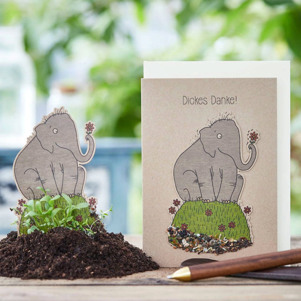 ¿No sabes cómo agradecer a una persona que te importa? ¡Entonces este simpático elefantito es perfecto para ti! ¿Lo divertido? El papel está compuesto por muchas semillas de flores y se puede quitar y plantar en la tierra. En poco tiempo, la persona a la que le hayas dado la tarjeta tendrá la casa llena de flores bonitas y teñidas con colores.