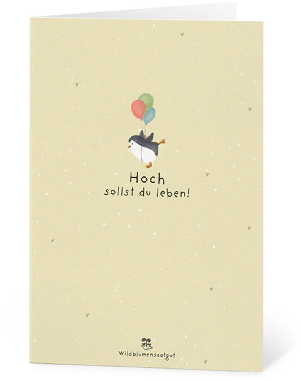 «Hoch sollst du leben!» se puede traducir como «¡Larga vida!». Esta tarjeta de papel semilla es el regalo perfecto para alguien que merece ser homenajeado con cariño. Hace que el homenajeado se sienta especial, ya sea en un momento compartido, con una sorpresa en el buzón o con un detalle cariñoso junto a un regalo.