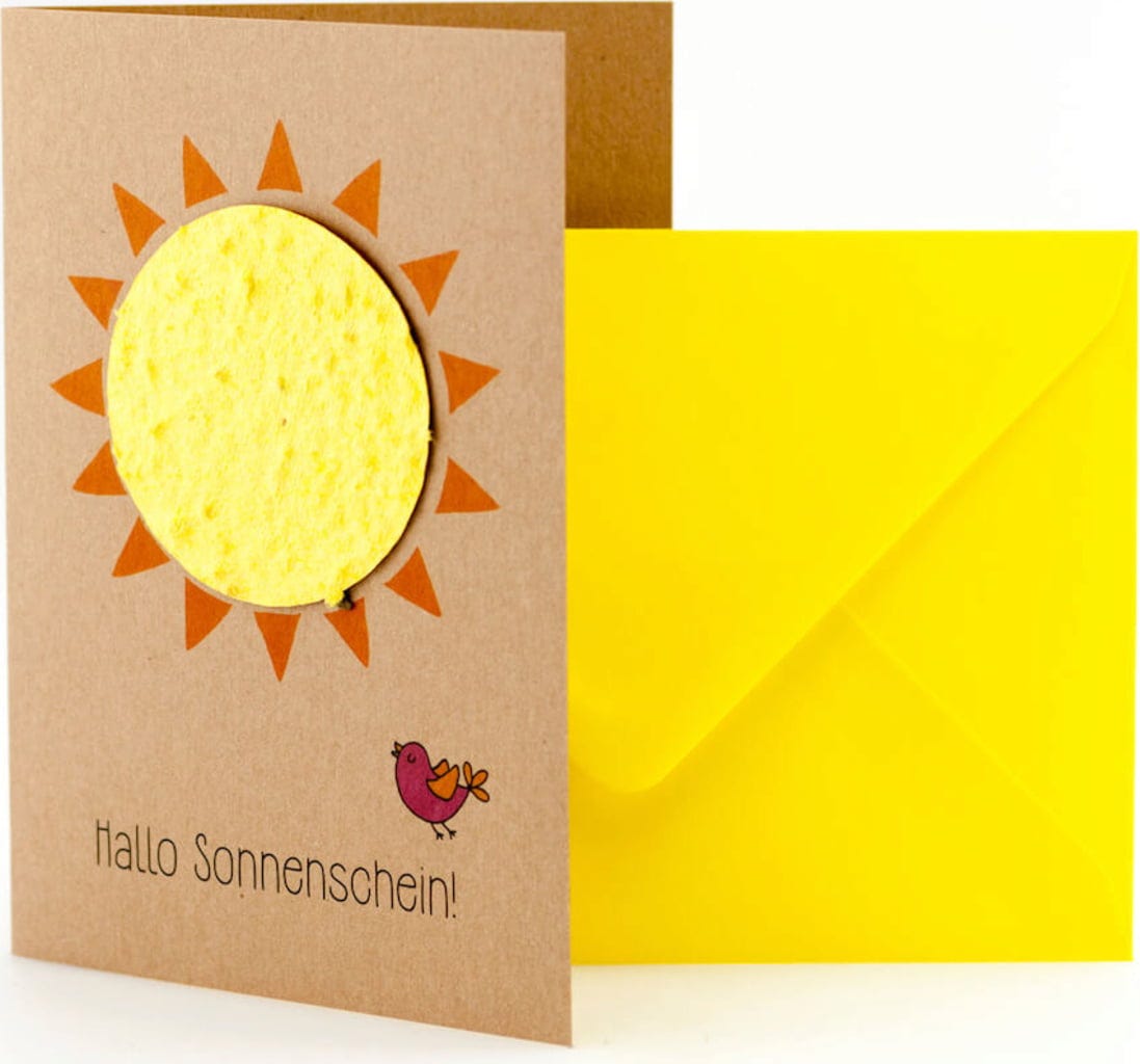 No importa si quieres decirle a una persona muy especial que es el sol de tu vida o si simplemente estás feliz por la llegada de la primavera, ¡esta preciosa postal siempre será perfecta para expresar tu alegría! Y no solo eso: ¡el sol está lleno de semillas de flores, listas para ser plantadas!