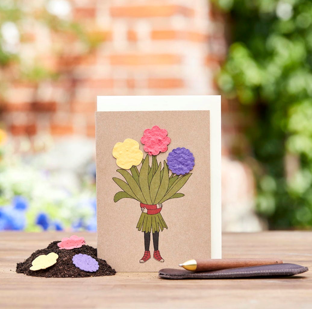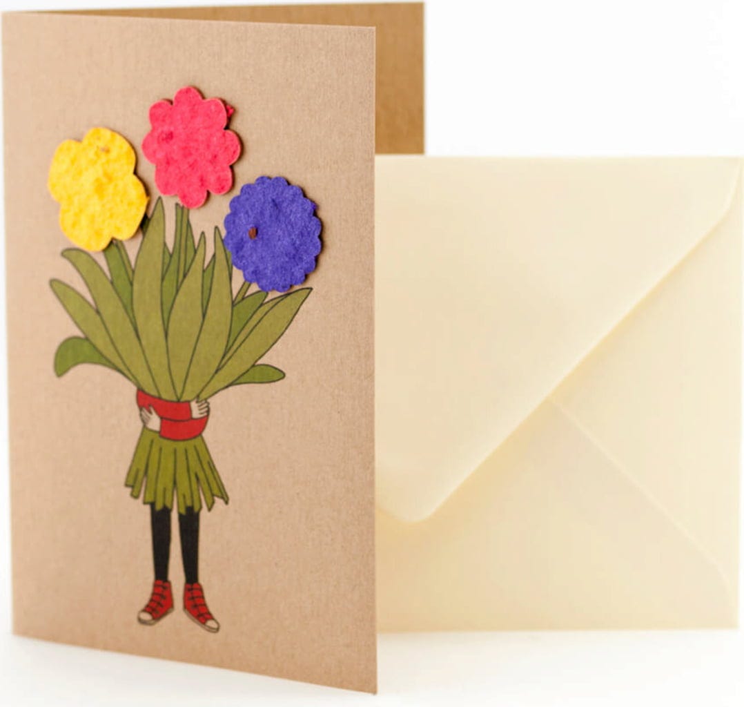Esta adorable tarjeta es el regalo perfecto para los amantes de las flores. ¿Lo mejor? El papel utilizado está lleno de semillas de flores listas para ser plantadas en la tierra.