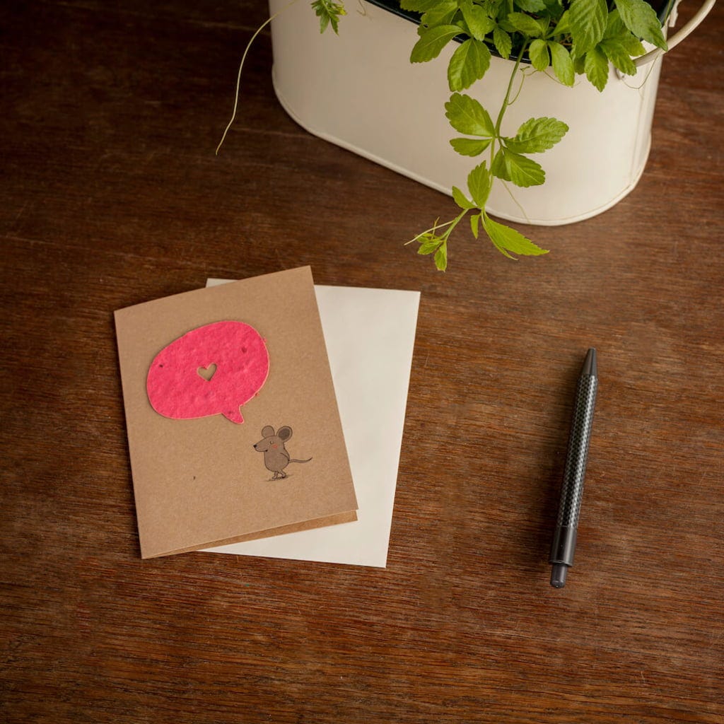 ¡Este simpático ratoncito te robará el corazón! ¿Quién necesita añadir más palabras cuando tiene un mensajero tan dulce? Con esta simpática tarjeta, declarar tus sentimientos será pan comido. Y no solo eso: el cómic está enriquecido con muchas semillas especiales. ¡Basta con plantarlas para tener un jardín lleno de flores bonitas y coloridas!