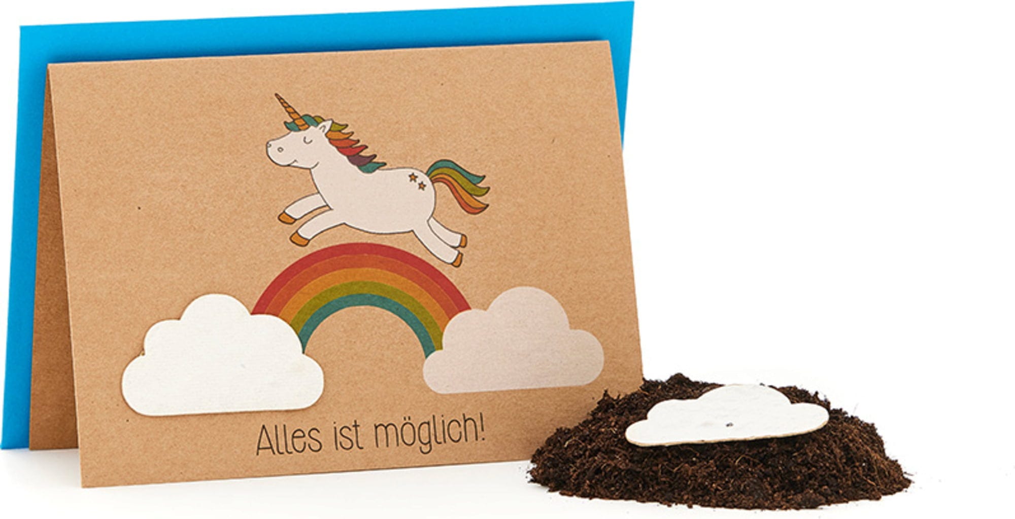 Dado que las nubes también están impresas en el papel, el motivo permanece incluso después de que las semillas se hayan retirado para ser plantadas.