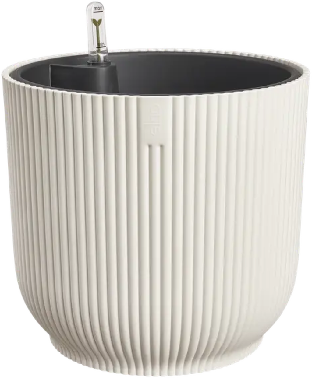 elho all-in-1 vibes round 25 cm + Inserto para riego automático, blanco lino