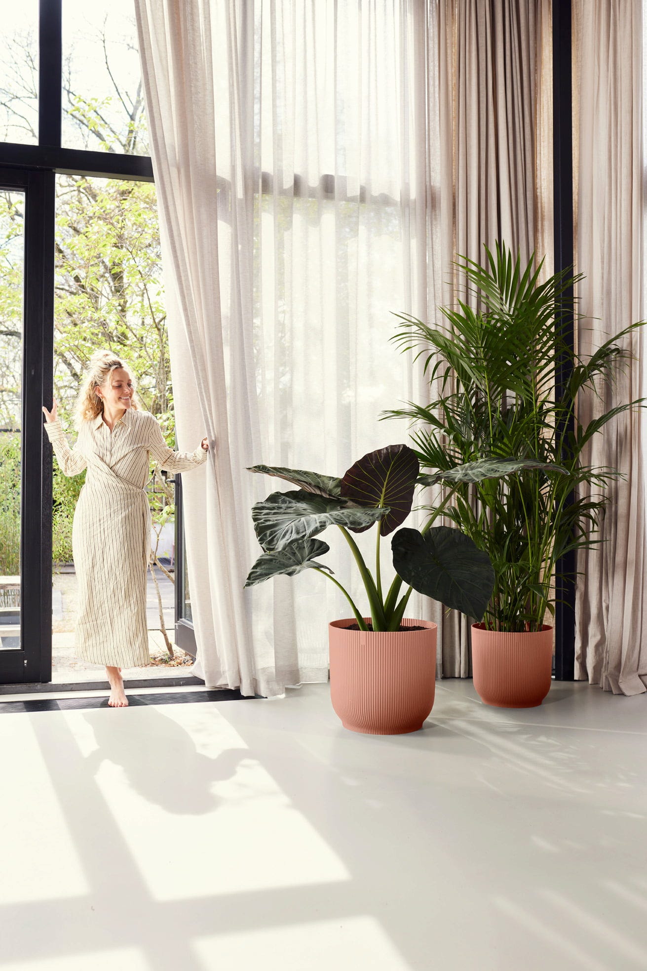 Su forma esencial y atemporal, combinada con el refinado motivo en relieve, convierte a esta maceta de plástico reciclado en un elegante elemento decorativo y en el marco perfecto para tus plantas de interior. Una forma moderna y armoniosa de llevar el verde a los ambientes de tu hogar.