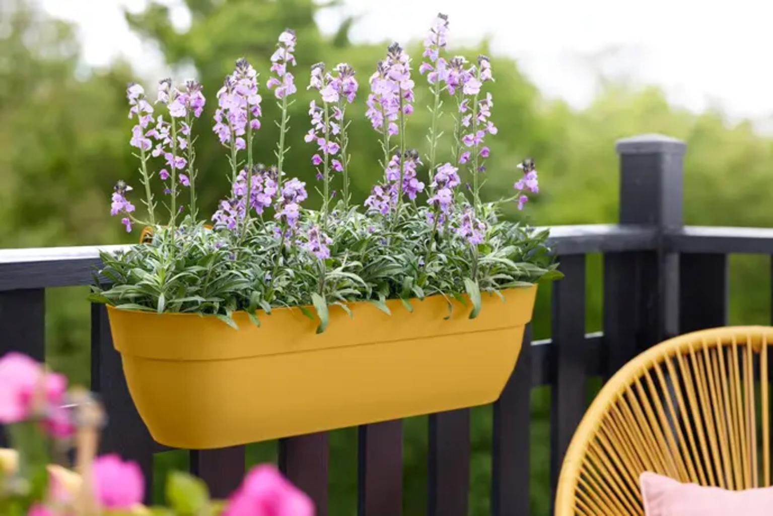 Amplia jardinera de balcón para plantas frondosas