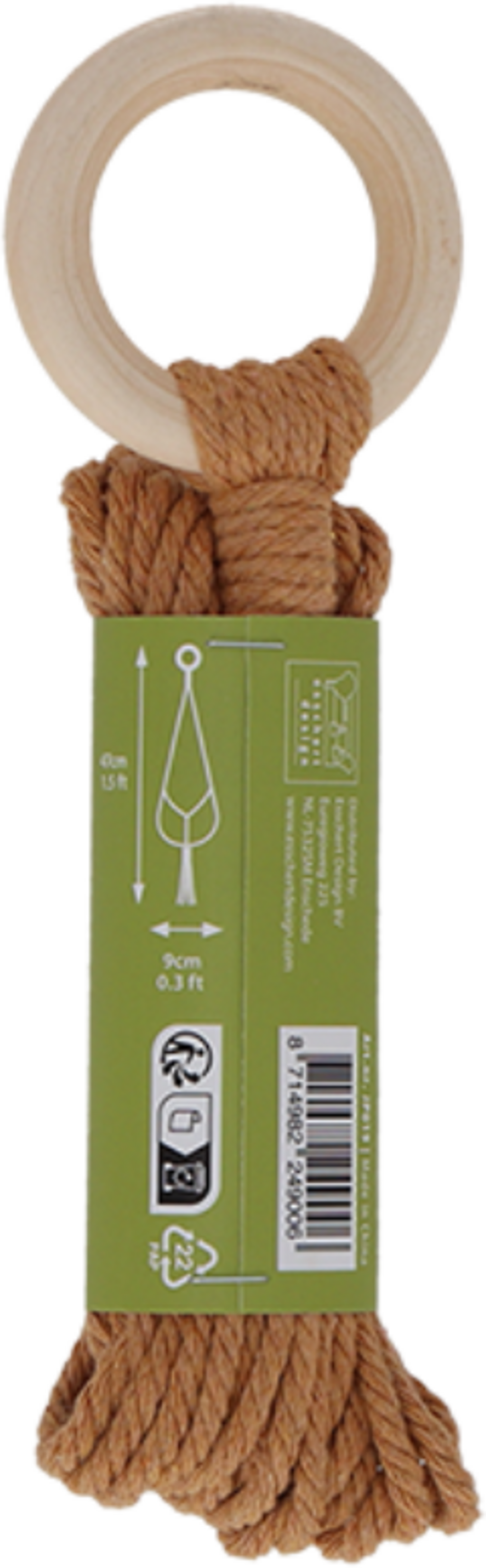 Con este soporte de macramé podrás dar a cualquier habitación un toque boho chic y colgar macetas de diferentes tamaños para crear maravillosos rincones verdes. La anilla de madera te permite colgar el soporte de forma segura a la vez que le da un toque natural.