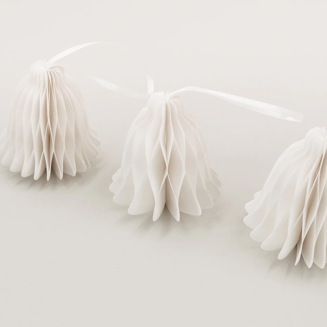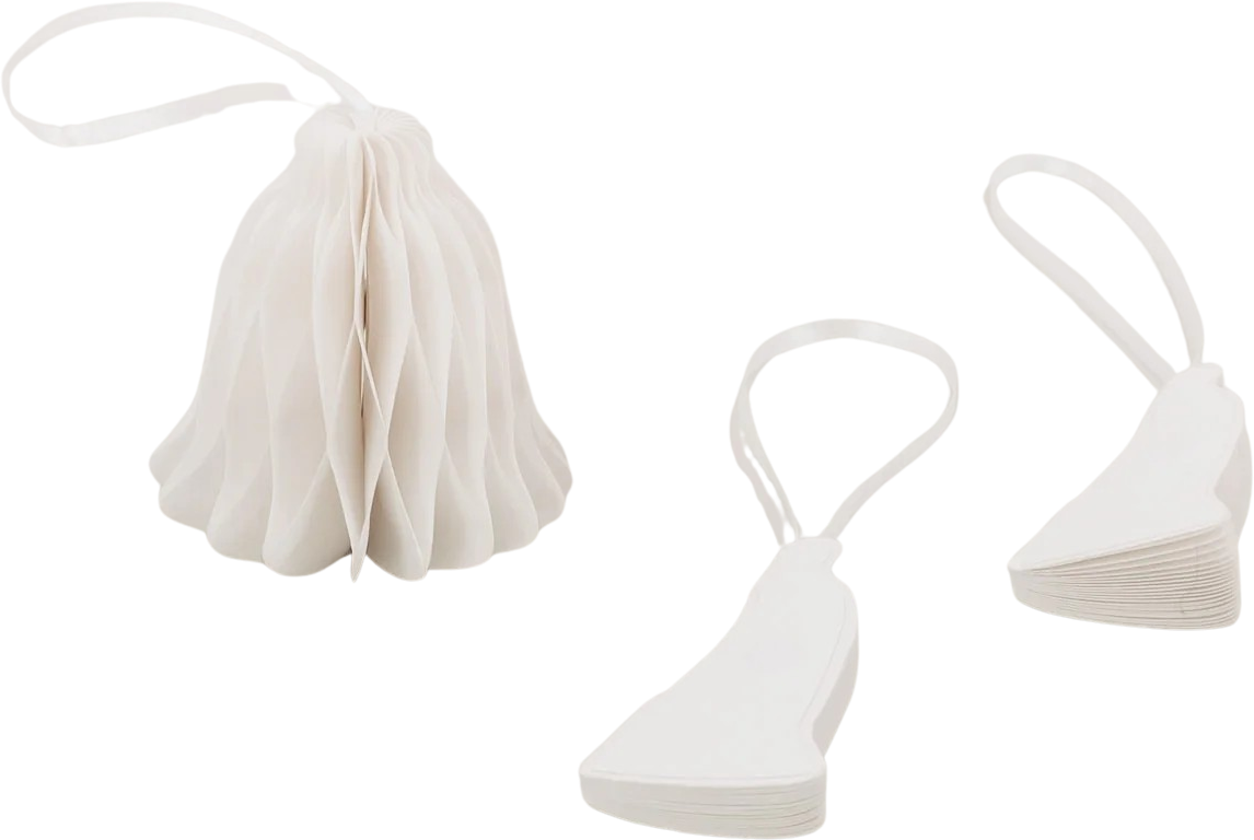 Estas campanas de papel aportan un toque de elegancia natural a la decoración navideña. Ya sea colgadas en el árbol de Navidad, en ramas, ventanas o paquetes de regalo, aportan un toque discreto y refinado.