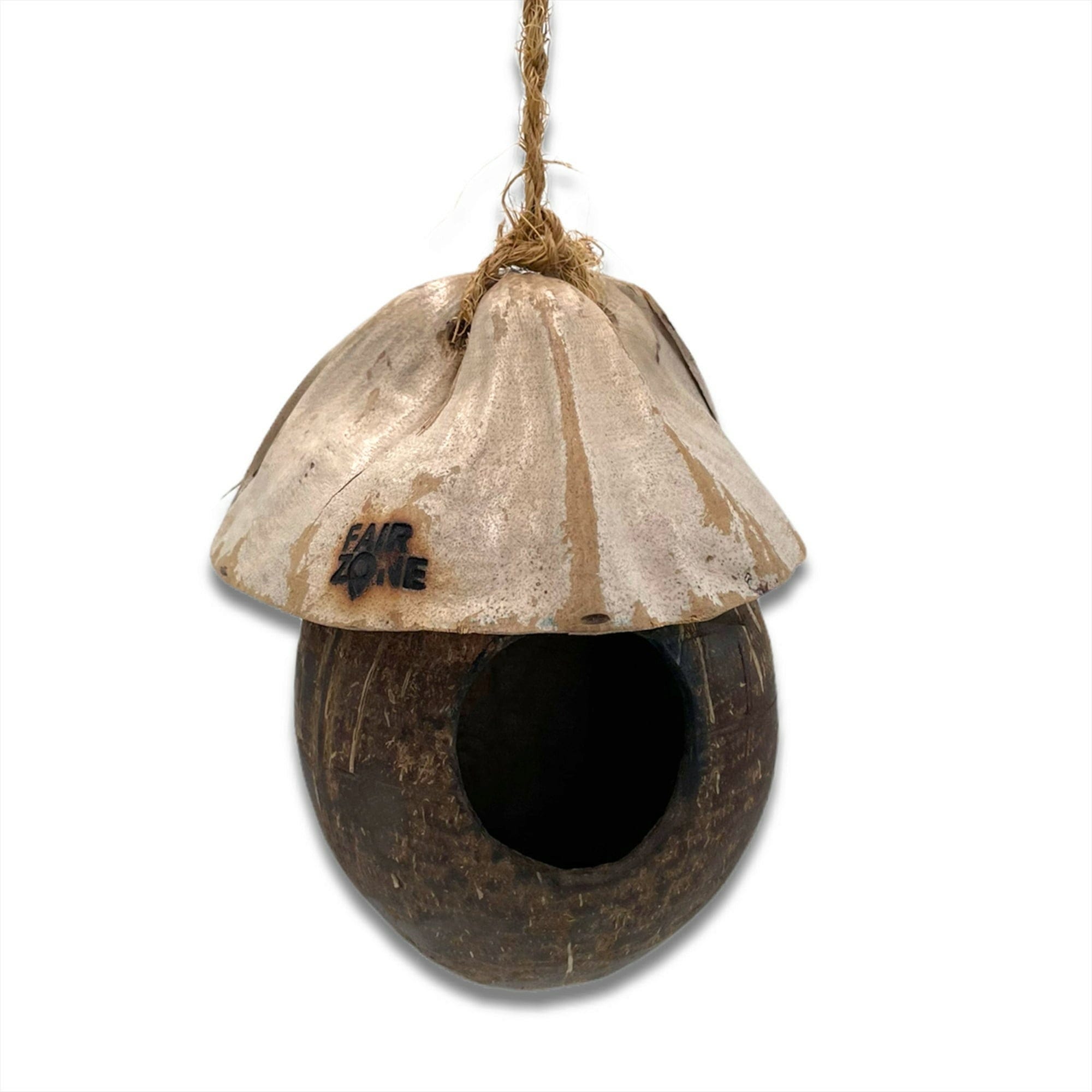Esta casita para pájaros puede utilizarse tanto como comedero como lugar de anidación, contribuyendo así de forma valiosa a la protección de las especies. Está fabricada con un solo coco, cuya cáscara sirve de tejado. El cordel para colgar la casita también es de fibra de coco, por lo que este producto está compuesto al 100 % por materiales naturales.
