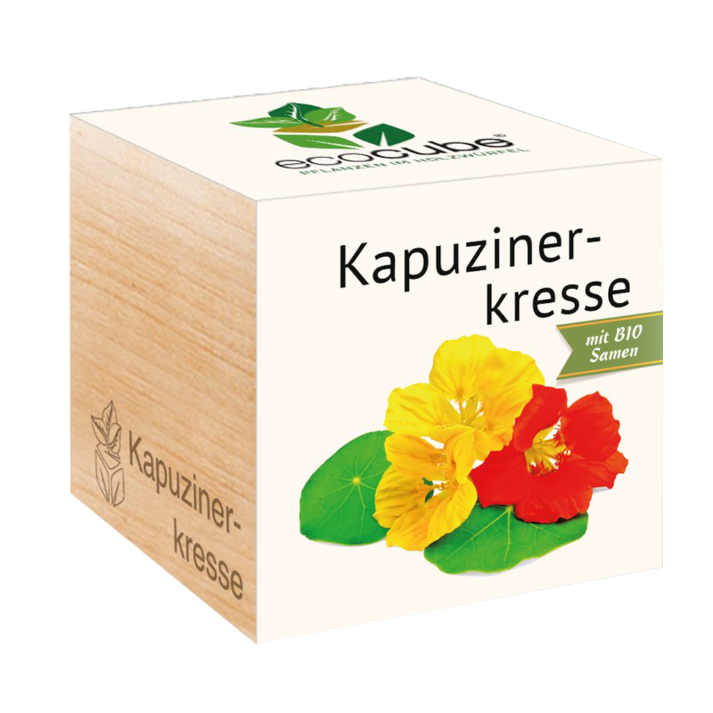 Los Ecocube, hechos de madera austriaca de alta calidad, están rellenos con un granulado especial y semillas orgánicas. ¡Cultivar flores y plantas nunca ha sido tan fácil! Simplemente retira la etiqueta de sellado del cubo, agrega agua y coloca el Ecocube en un lugar iluminado. Después de unos días, las primeras plantas pequeñas se asomarán.