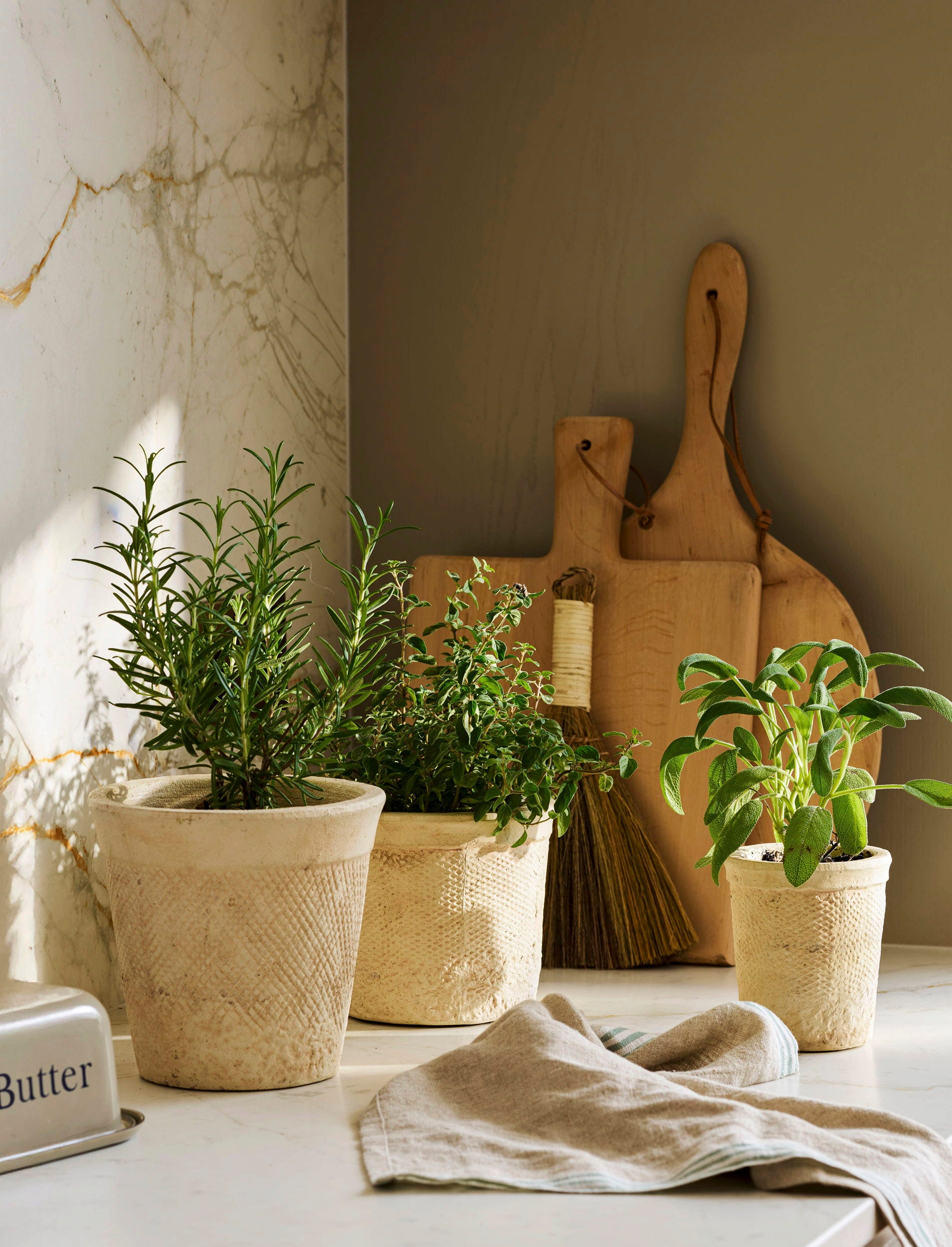 La superficie de piedra finamente texturizada confiere a esta maceta un aspecto elegante, mientras que el interior impermeable garantiza unas condiciones óptimas para el crecimiento de las plantas. Ideal para pequeñas hierbas, suculentas o arreglos en miniatura, esta maceta transforma la vegetación cotidiana en un refinado elemento de diseño.