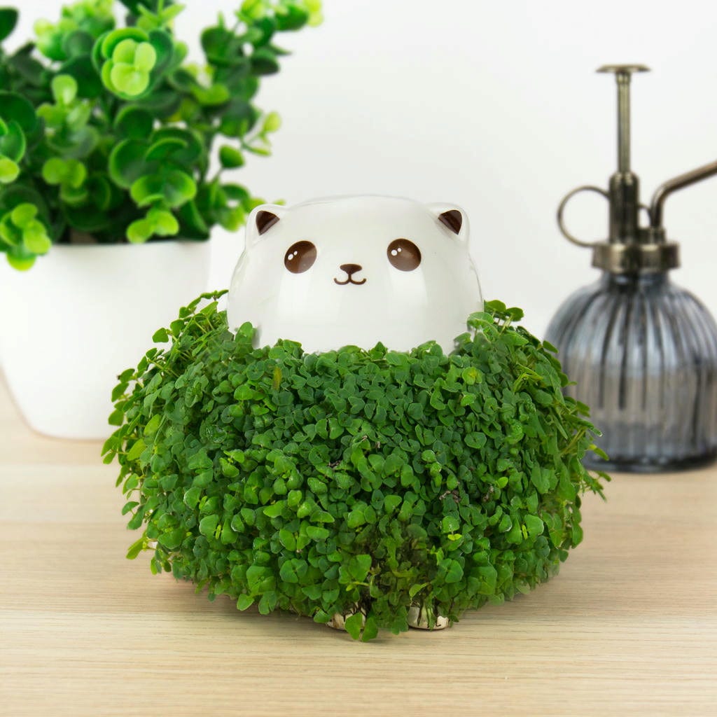 El adorable gatito solo espera que lo cubras con las semillas de chía incluidas y lo riegues. Observa con gusto cómo su suave manto verde crece día tras día.